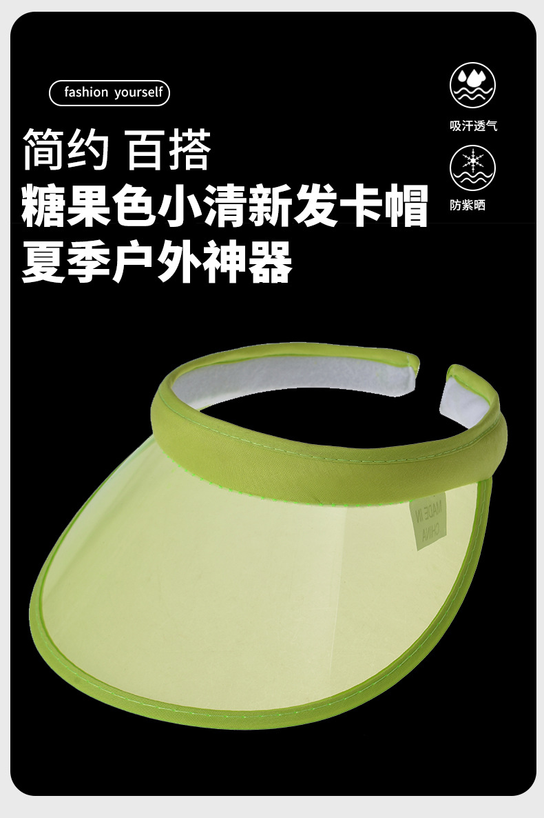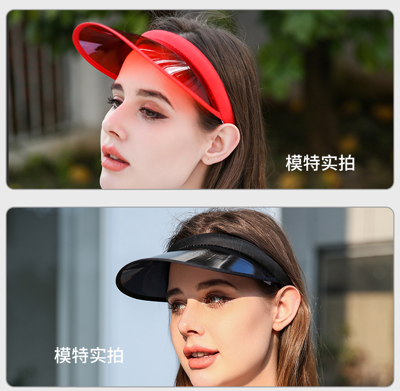PVC 유럽과 미국의 플라스틱 차양 모자 야외 광고 실행 UV 헤어 카드 태양 모자 인쇄 로고스토어 가기