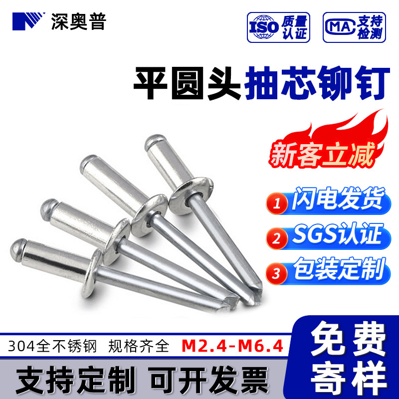304 모든 스테인레스 스틸 오픈형 블라인드 리벳 플랫 라운드 헤드 리벳 플랫 라운드 헤드 당겨 나사 M2.4M3-M6.4스토어 가기