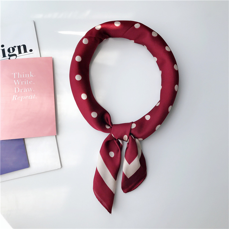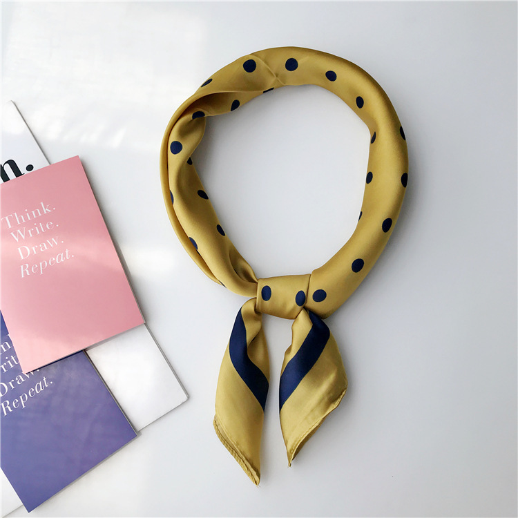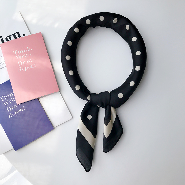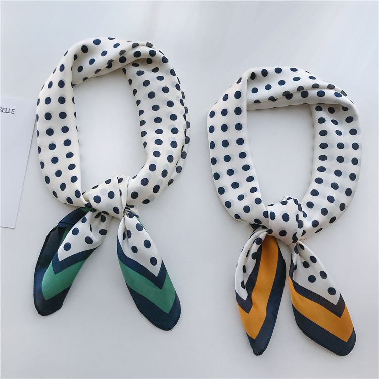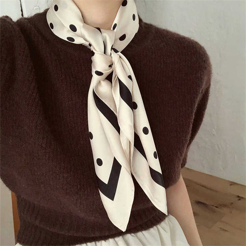 70 모조 실크 스카프 여름 얇은 우아한 모든 일치 인쇄 도트 작은 사각형 한국 스타일 여성의 작은 스카프 숄