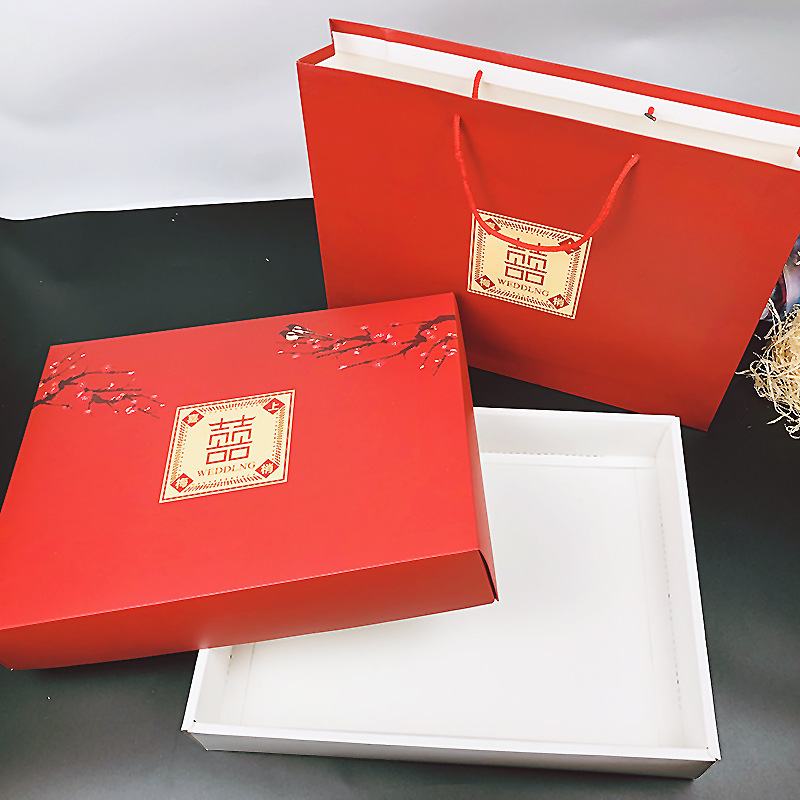 수건 선물 상자 빨간 수건 반환 선물 상자 두 박스 핸드백 웨딩 반환 수건 선물 상자 세트