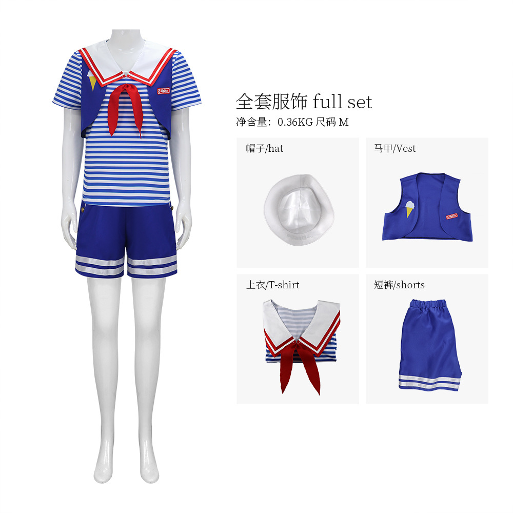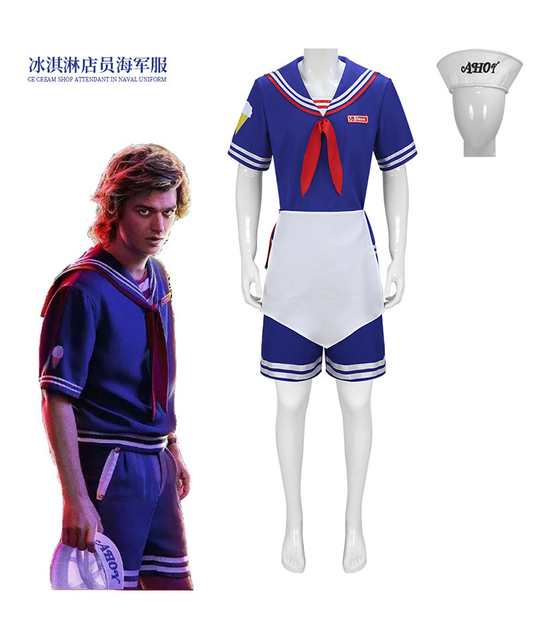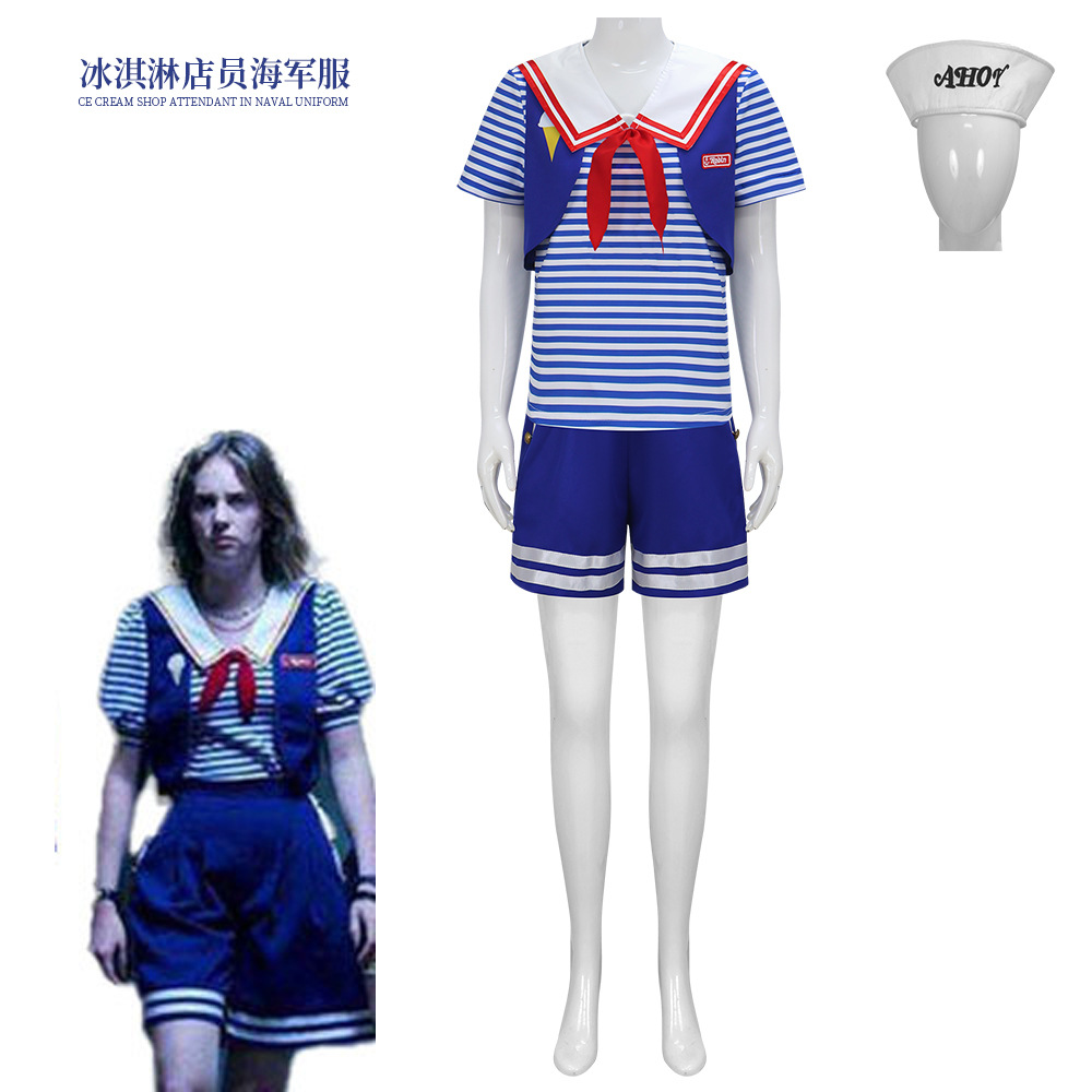 Jujiyuan cos 이상한 이야기 3 코스프레 아이스크림 가게 직원 해군 의류 코스프레 유니폼 의류스토어 가기