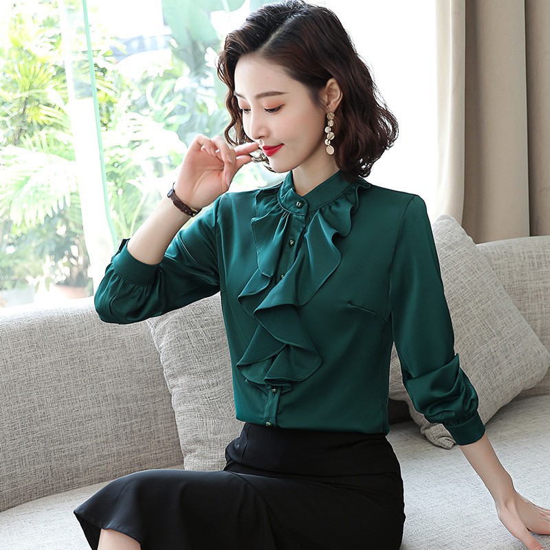 秋冬女士衬衫 职业气质白领蕾丝花边长袖衫保暖修身显气质