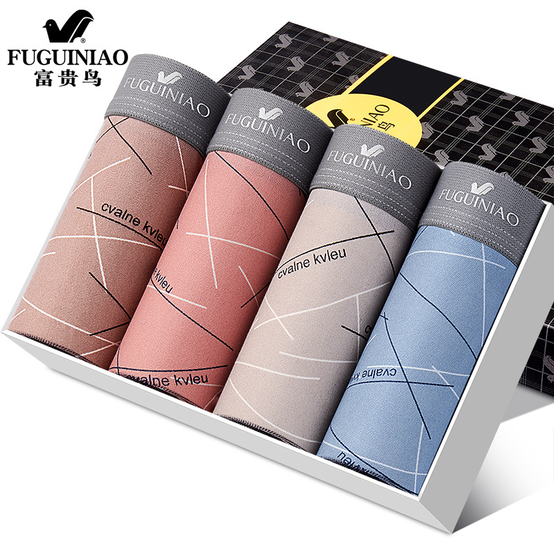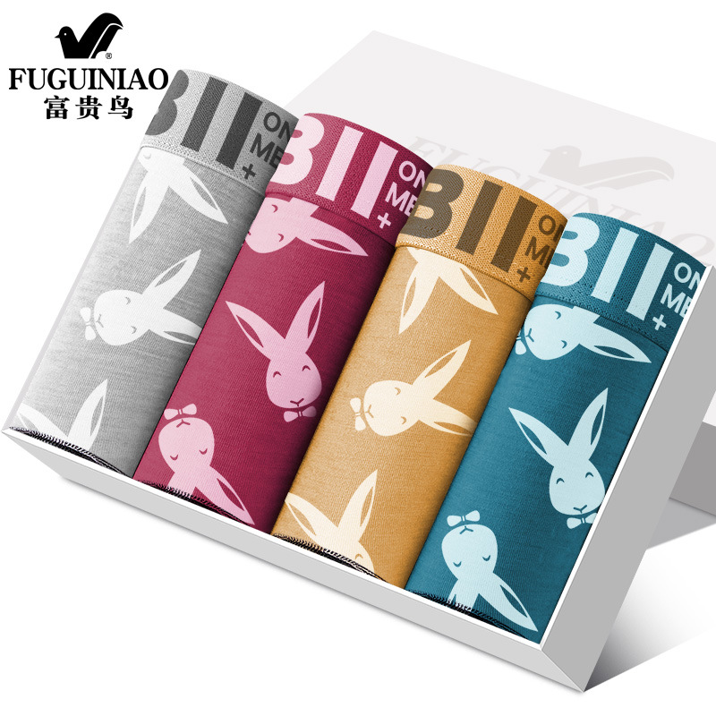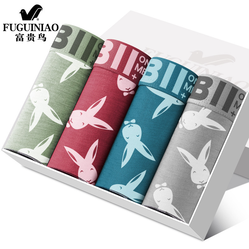 Fugui Bird 항균 남성 속옷 남성용 사각팬티 헤드 프린트 통기성 남성용 복서 반바지