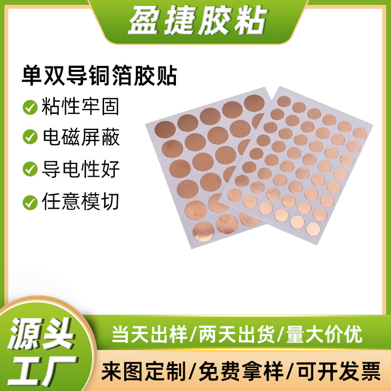 공급 라운드 자체 접착 구리 호일 테이프 전자기 차폐 전도성 구리 호일 종이 키 터치 단일 가이드 구리 호일 개스킷