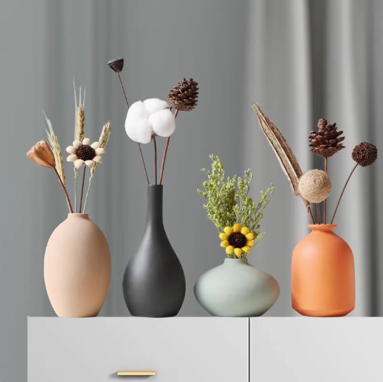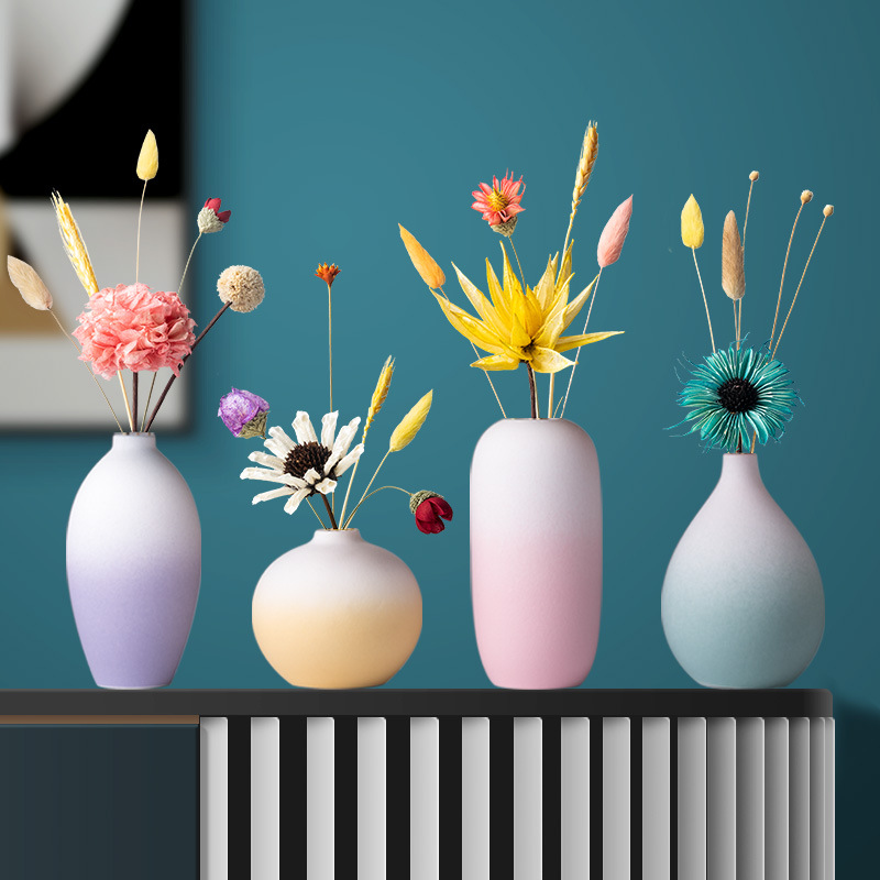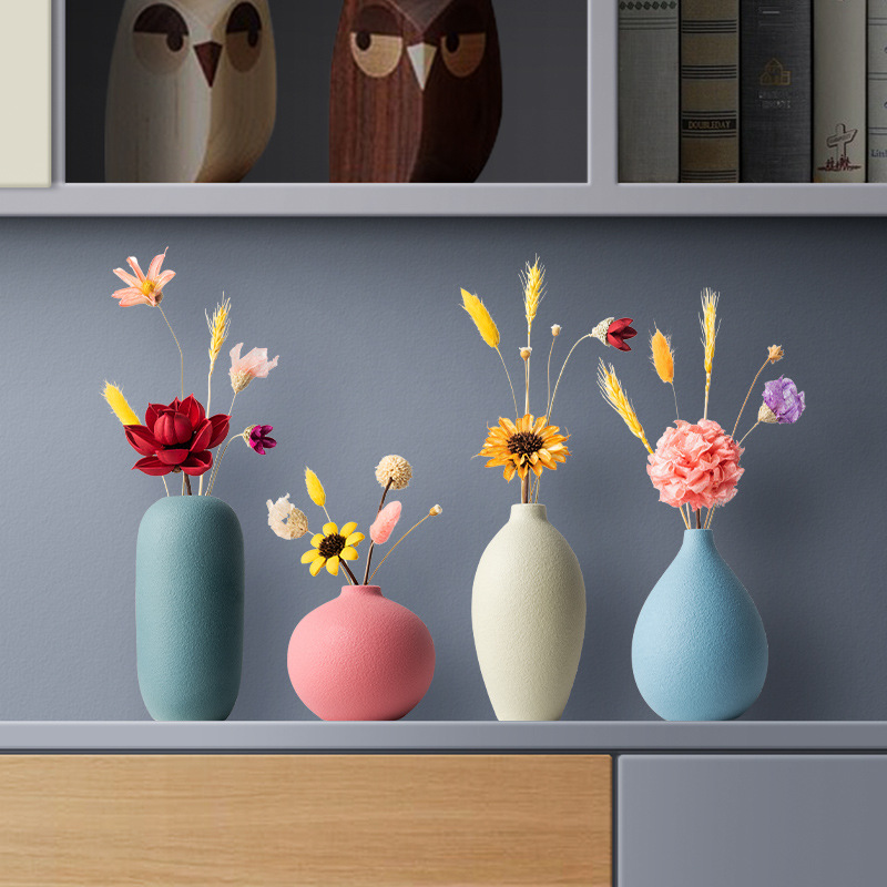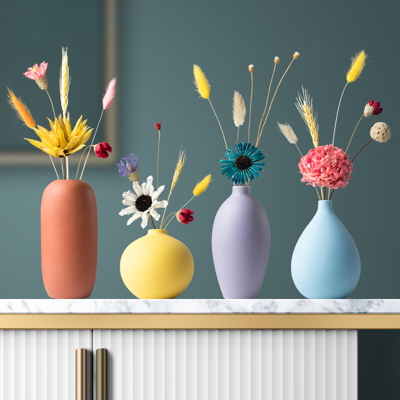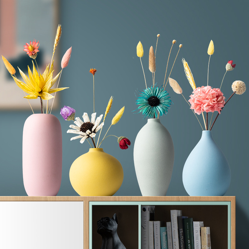 북유럽 마카롱 수제 세라믹 작은 꽃병 장식품 홈 공예 장식 거실 꽃 배열 말린 꽃 장식