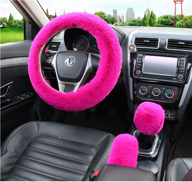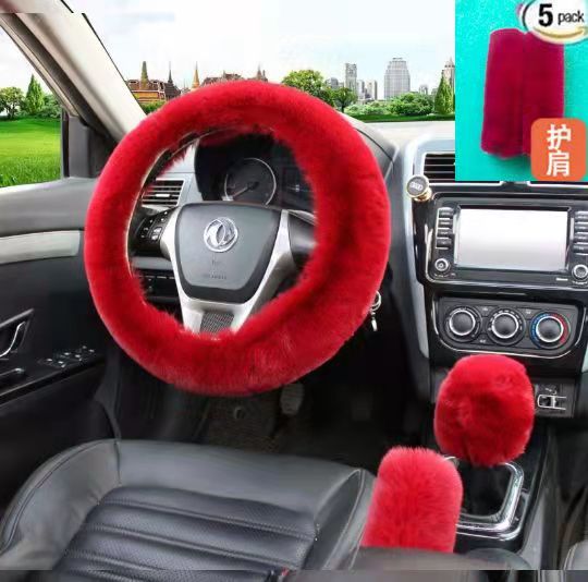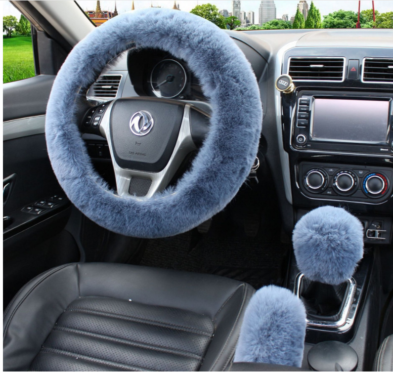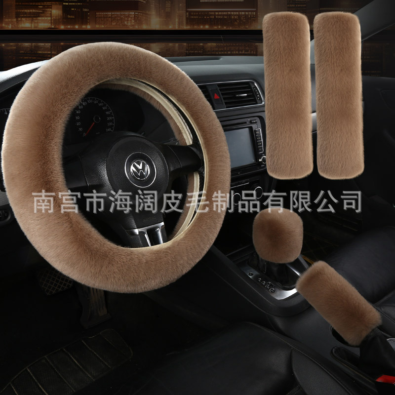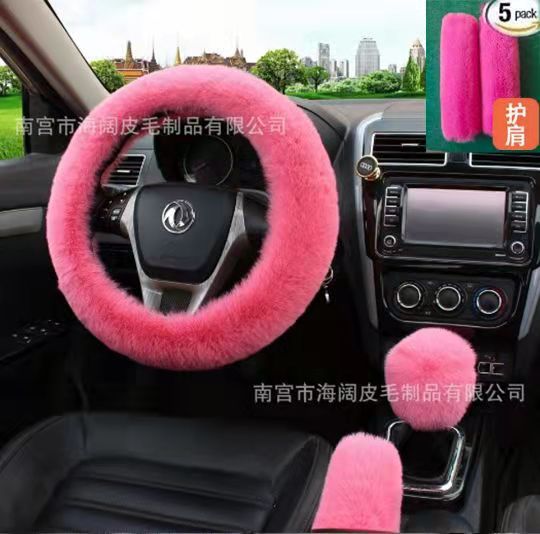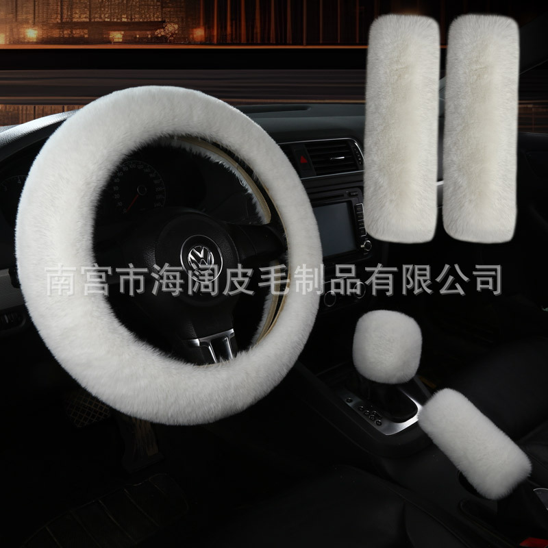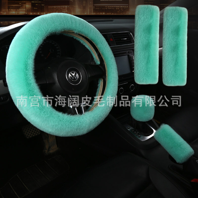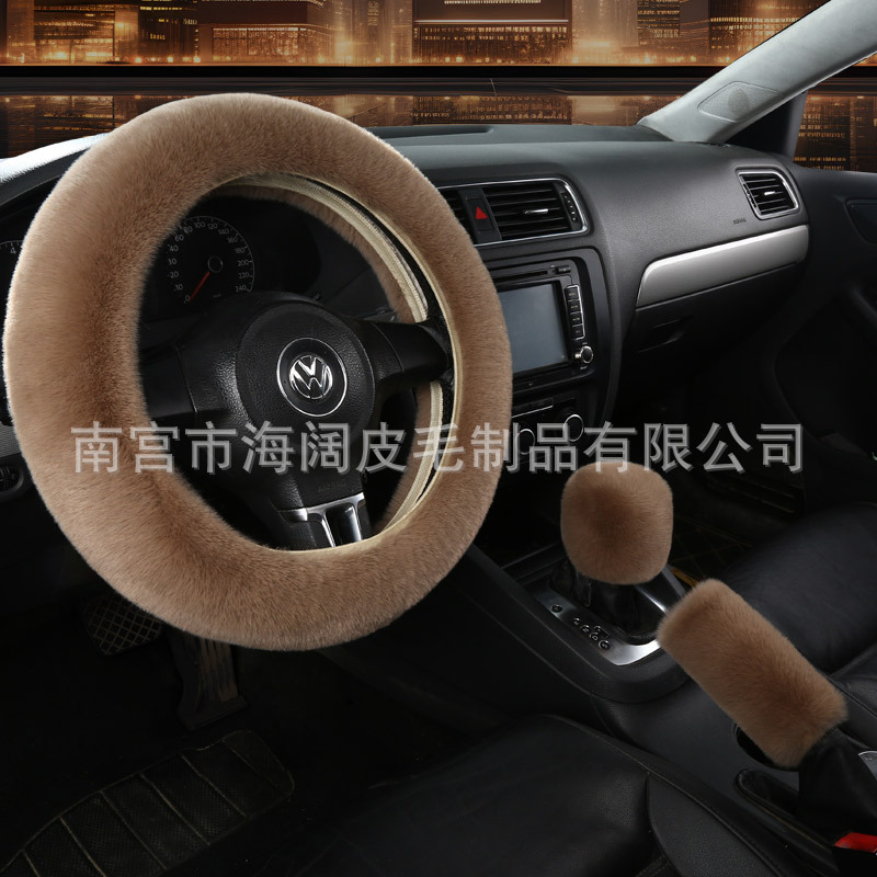 겨울 자동차 울 스티어링 휠 커버 자동차 핸들 커버 양 전단 짧은 모직 핸들 커버 렉스 토끼 플러시 스티어링 휠 커버