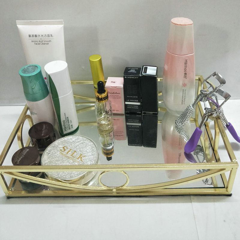 금속 거울 빛 고급 보관 바구니 거실 욕실 장식품 거울 트레이 유럽과 미국 화장품 보관 바구니