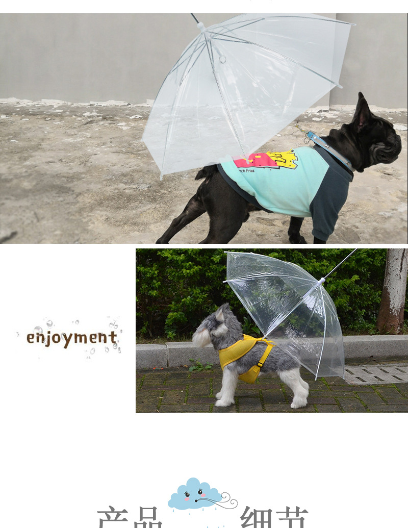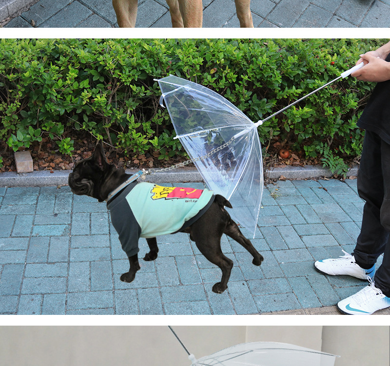국경 간 뜨거운 판매 애완 동물 우산 개 산책 가죽 끈 테디 개 조정 가능한 투명 비옷과 우산 제조 업체 도매스토어 가기