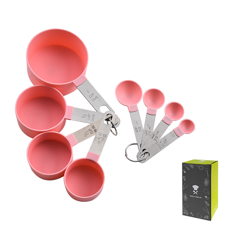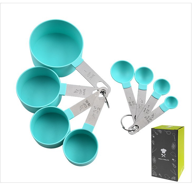 스테인레스 스틸 측정 컵 측정 숟가락 세트 베이킹 도구 스테인레스 스틸 손잡이 8 피스 플라스틱 측정 숟가락 측정 숟가락 세트