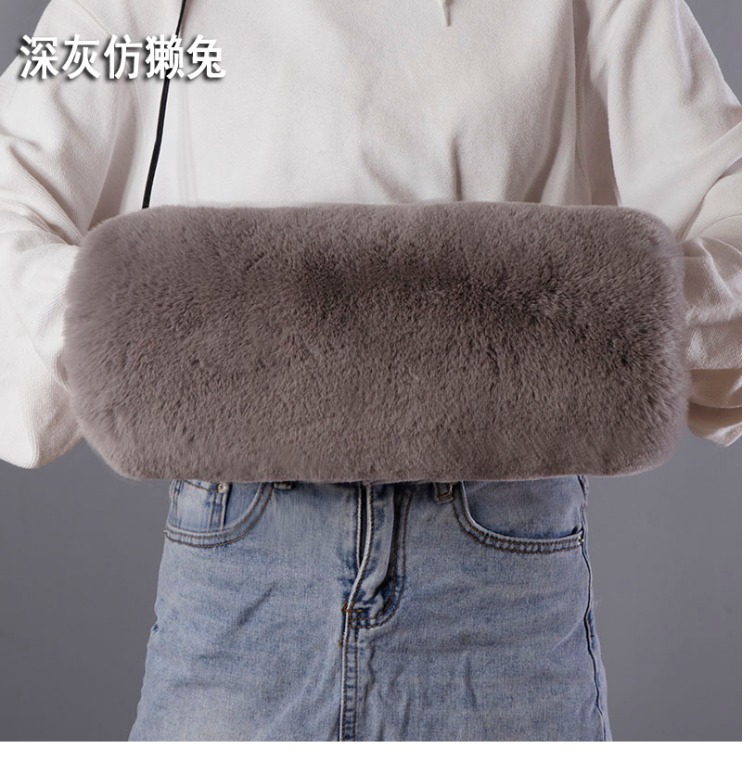 • 그을음 모조 토끼 헤어 숄더 스트랩 핸드 워머