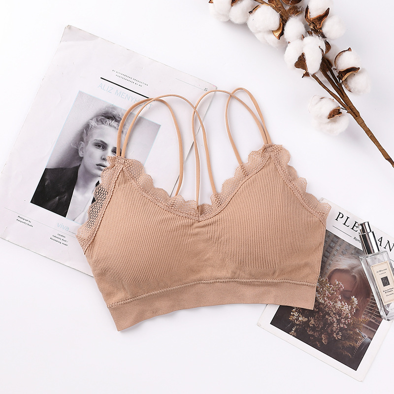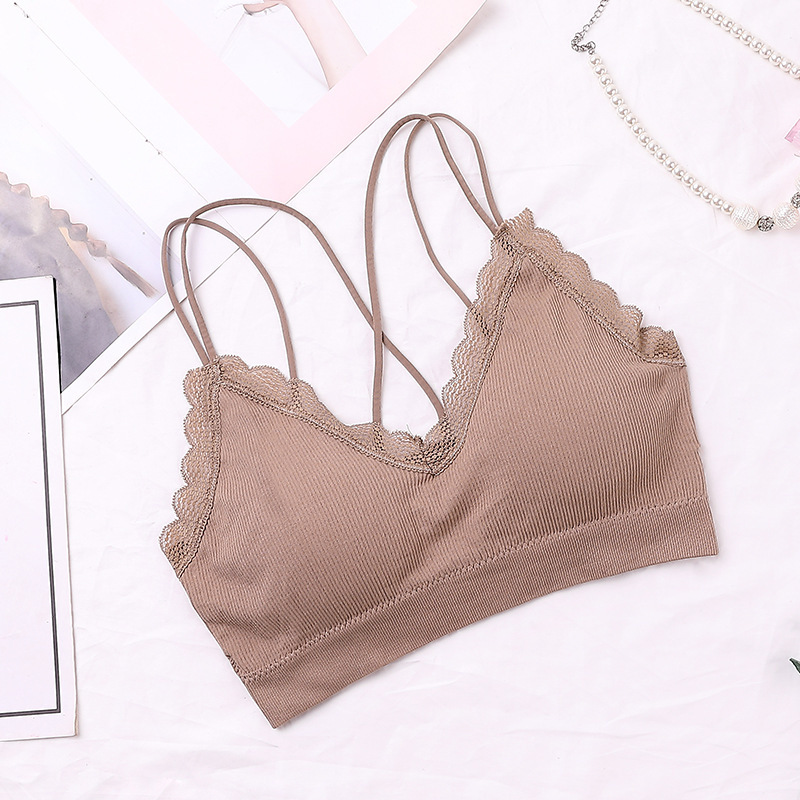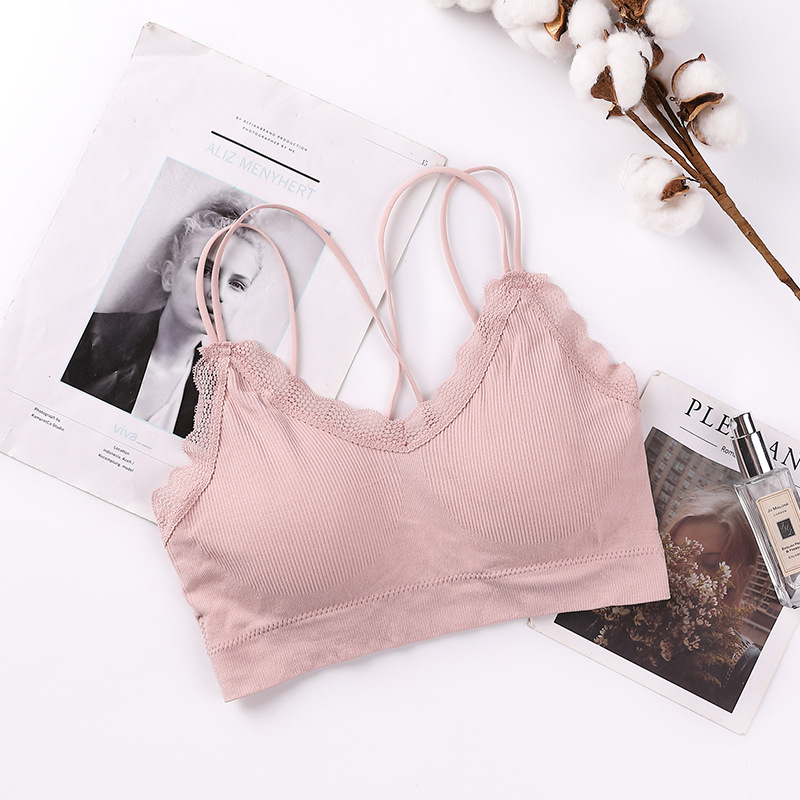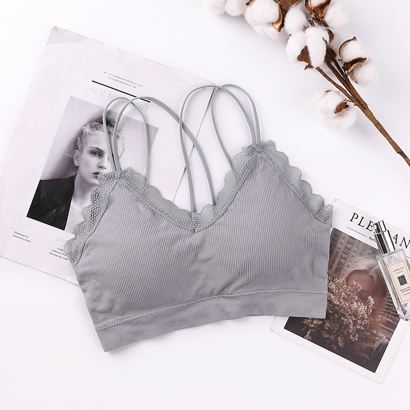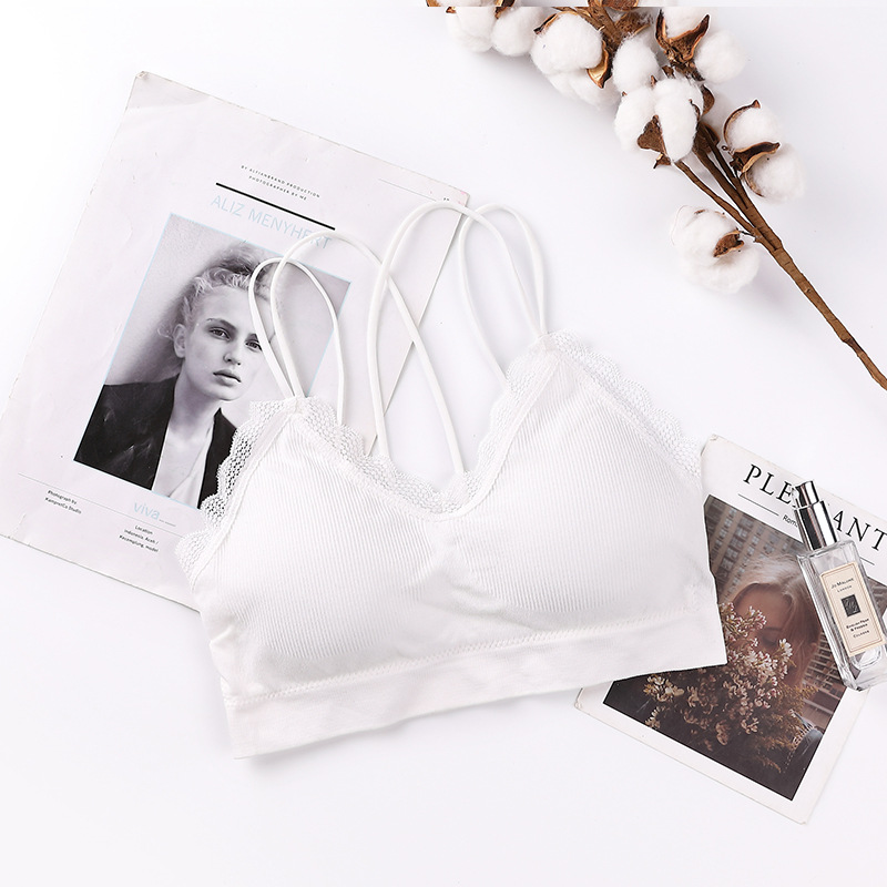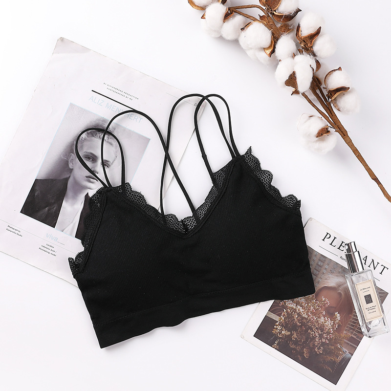 새로운 원활한 레이스 실 슬링 아름다운 다시 포장 가슴 얇은 어깨 끈 편안한 통기성 두꺼운 가슴 패드 수집 여성 조끼스토어 가기