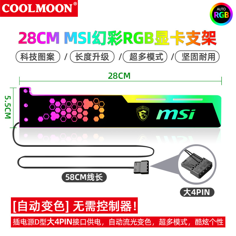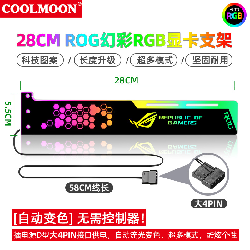 Cool Moon RGB 그래픽 카드 브래킷 28cm 다채로운 색상 변경 컴퓨터 케이스 DIY 라이트 패널 쿨 장착 지원 브래킷스토어 가기