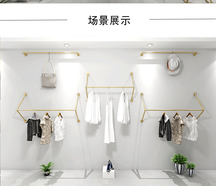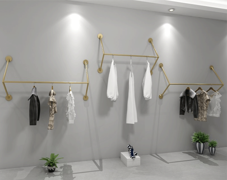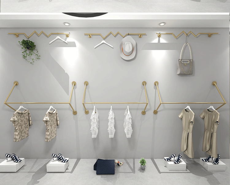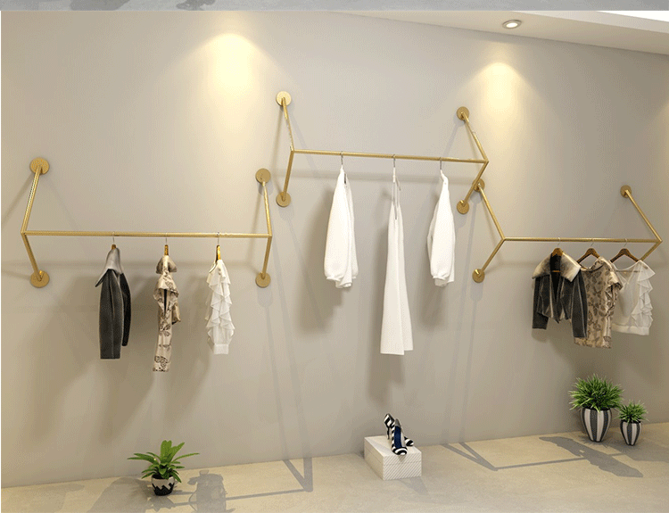 의류 매장 디스플레이 랙 여성 의류 매장 벽 랙 벽걸이 형 황금 옷걸이 아동 의류 매장 디스플레이 랙 철 의류 랙스토어 가기