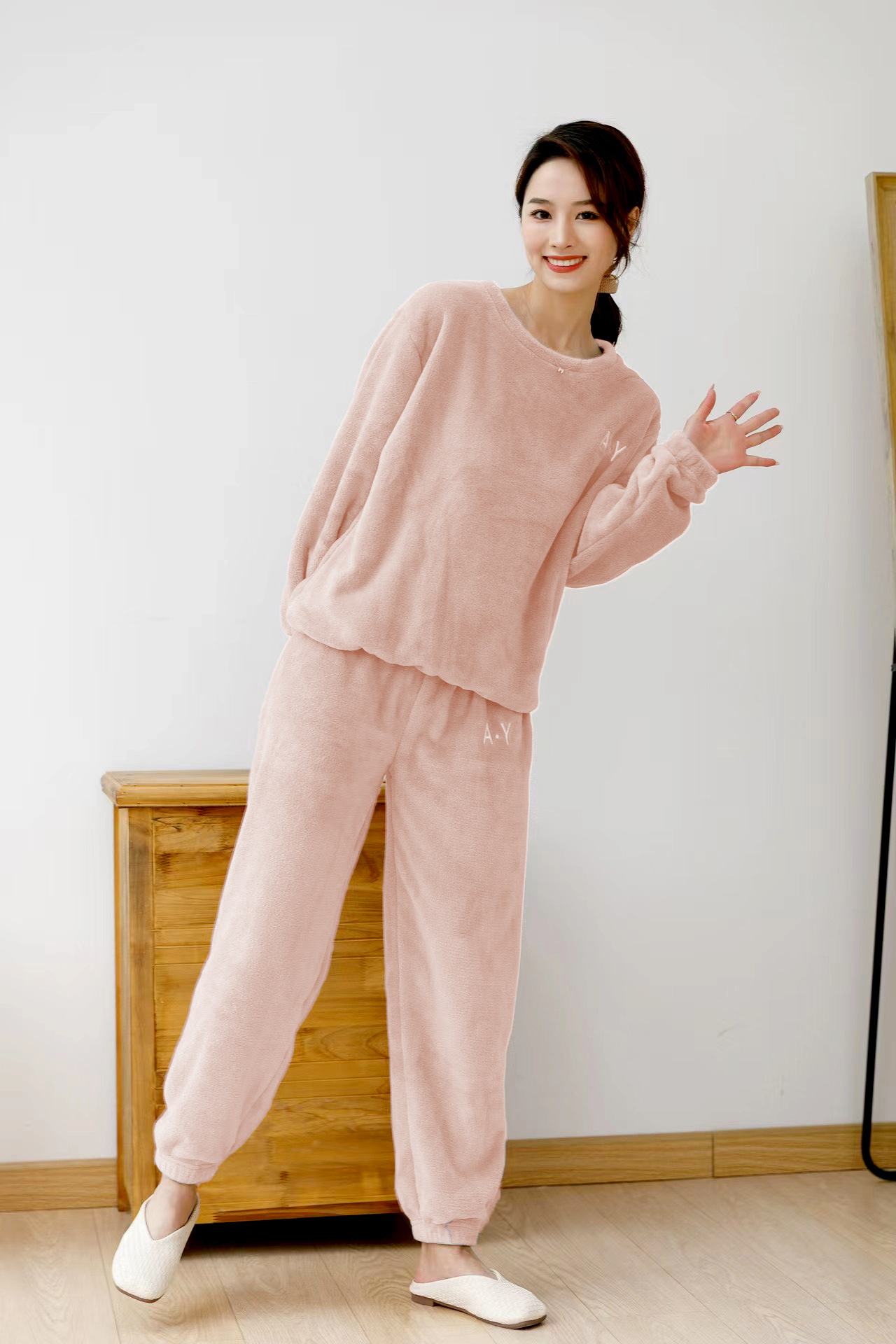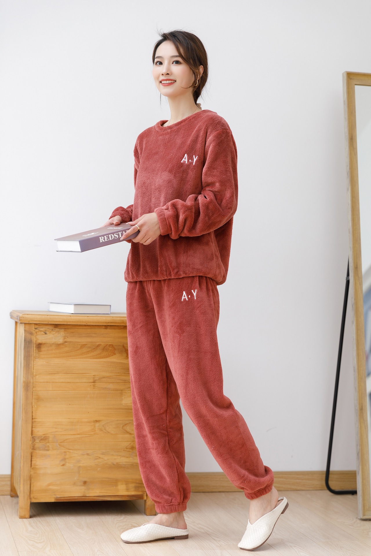 대형 요정 따뜻한 바지 정장 2024 라운드 넥 풀오버 산호 양털 잠옷 여성 가을, 겨울 Homewear스토어 가기