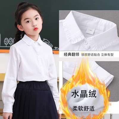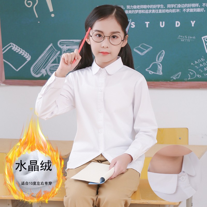 벨벳 코튼 따뜻한 셔츠 긴 소매 초중고 학생 캠퍼스 의류 도매 어린이 순수한 흰색 셔츠 소년
