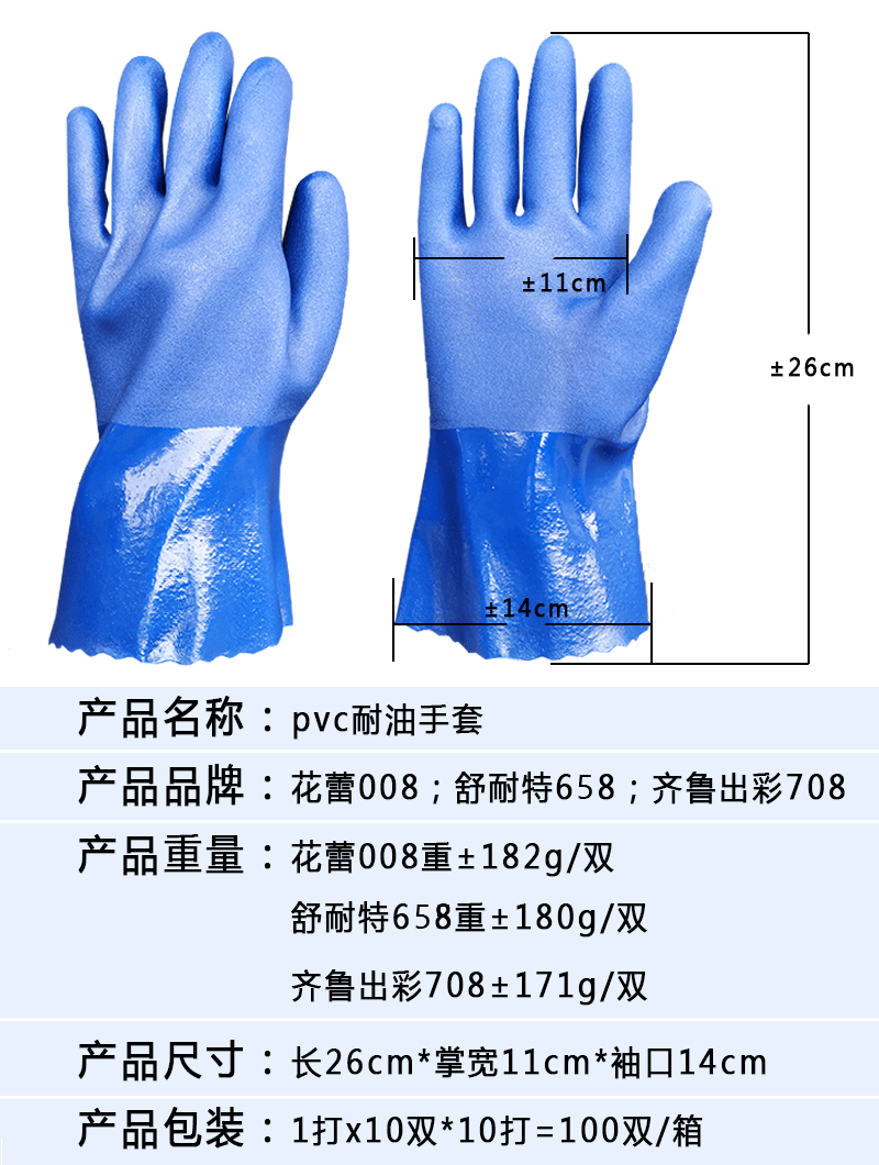 PVC 내유성 장갑 청색 젖빛 미끄럼 방지 장갑 고무 산 및 알칼리 내성 산업용 화학 보호 장갑