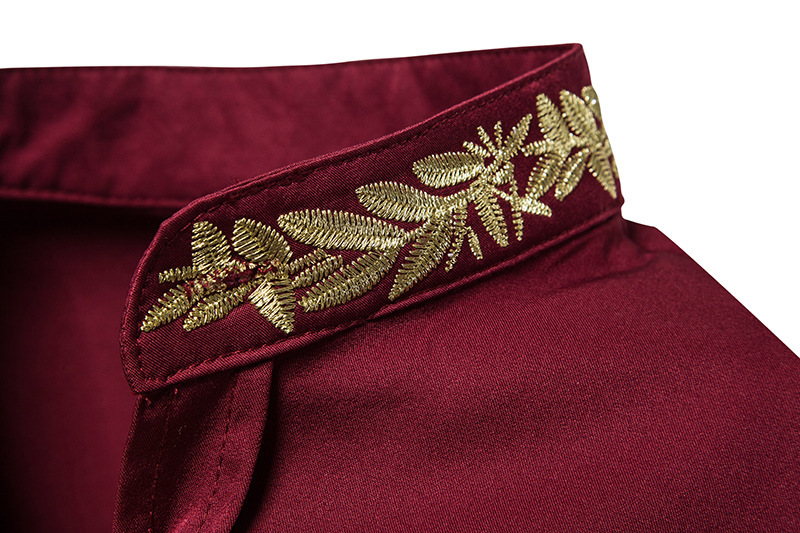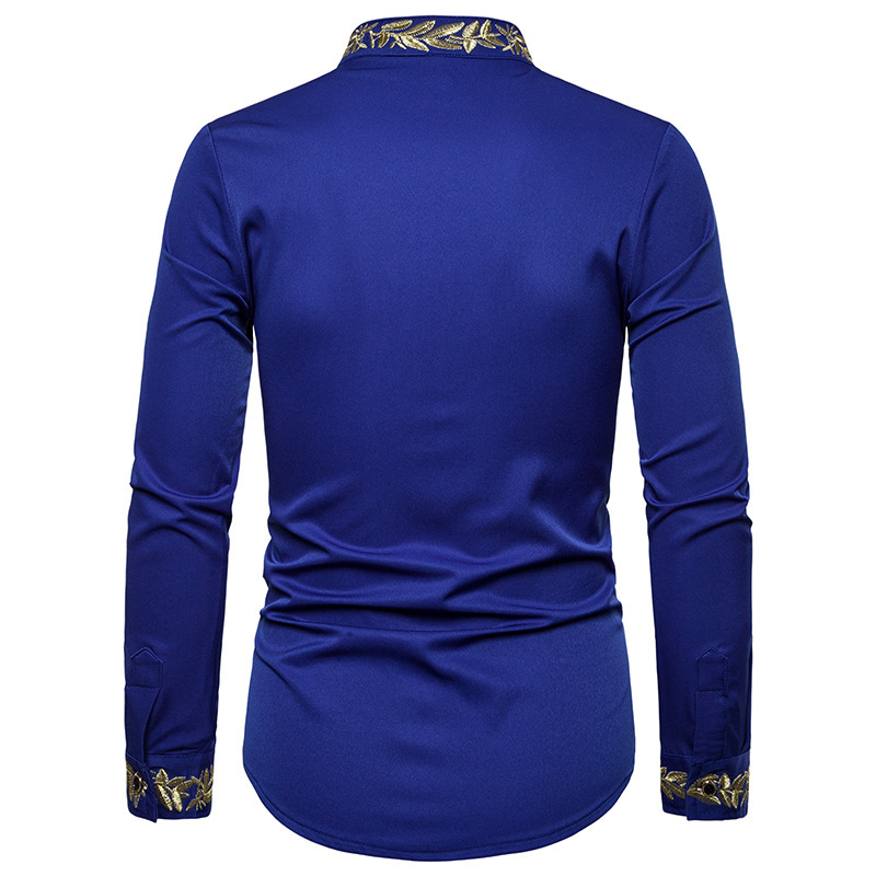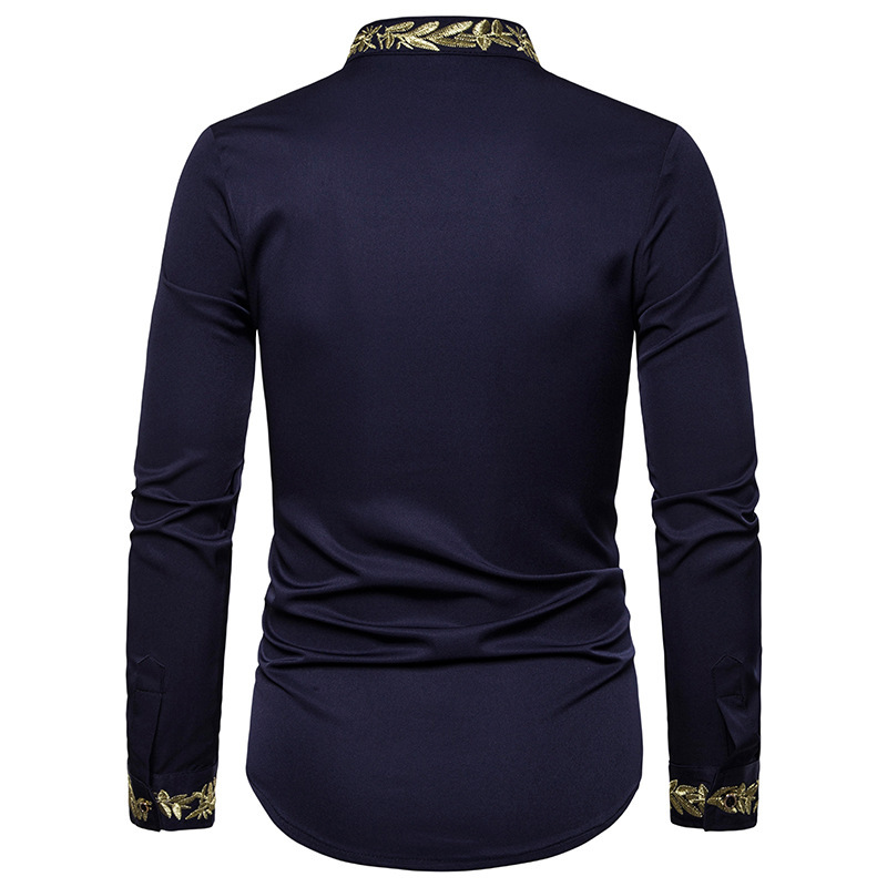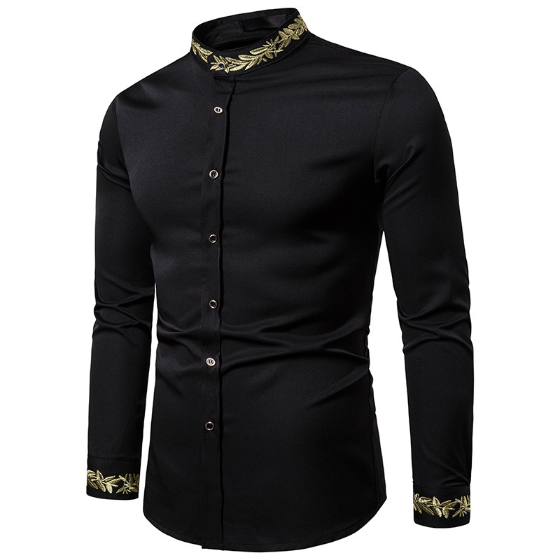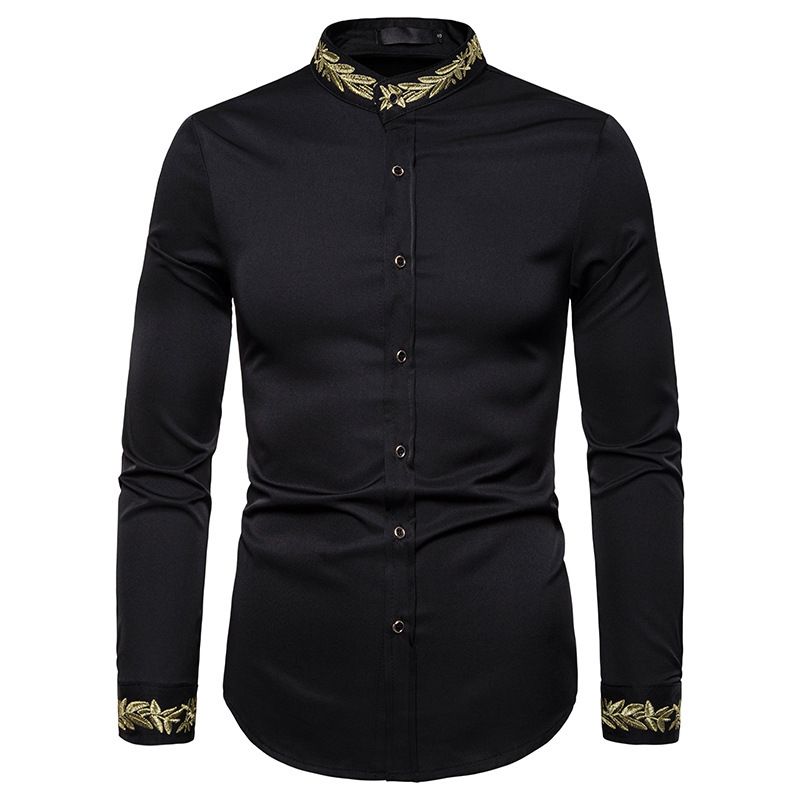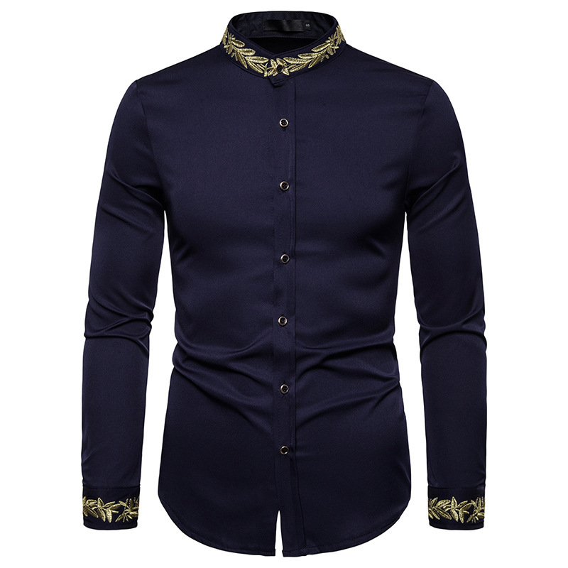 2021 대외 무역 유럽 코드 남성 패션 자수 셔츠 패턴 자수 헨리 칼라 긴 소매 셔츠 남성