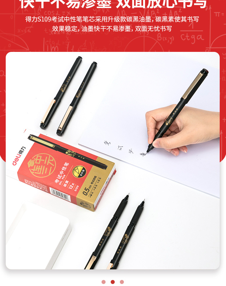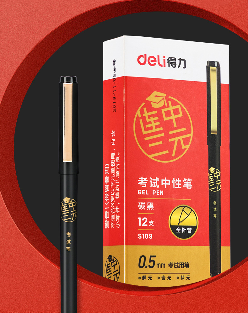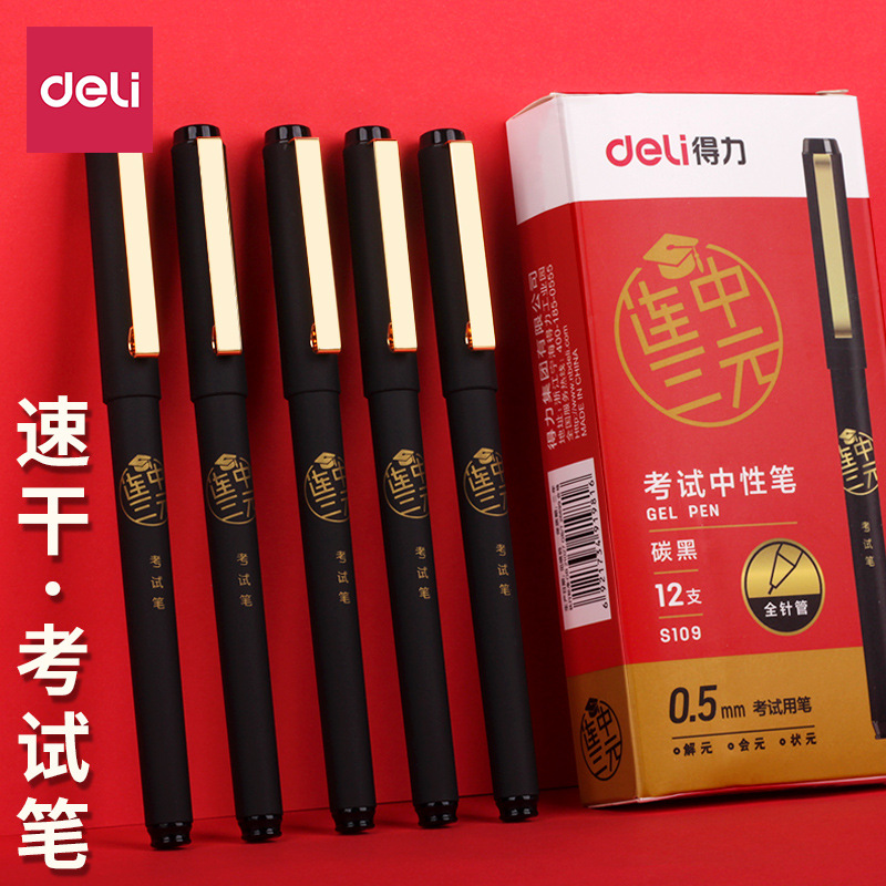 델리 s109 3 방향 테스트 젤 펜 빠른 건조 카본 블랙 잉크 전체 바늘 튜브 풀 캡 0.5 블랙 워터 펜스토어 가기