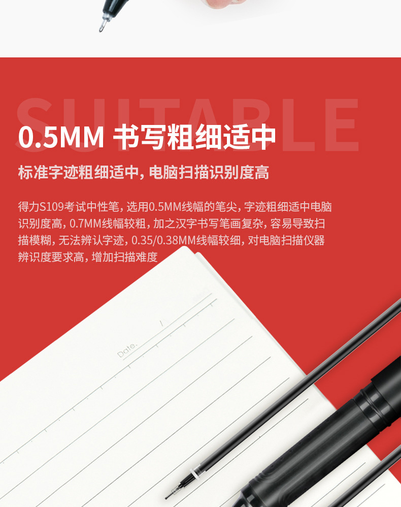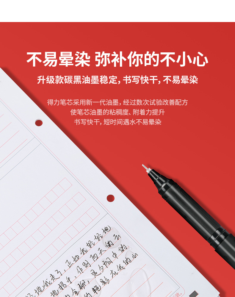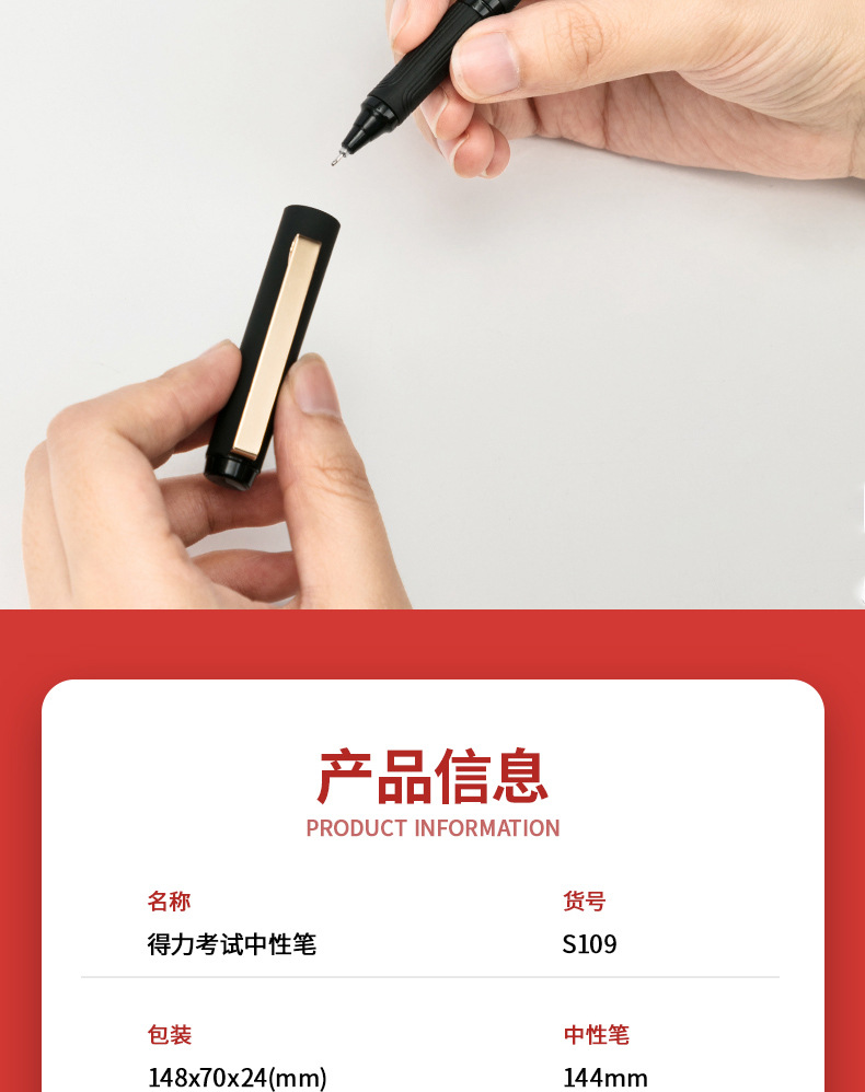 델리 s109 3 방향 테스트 젤 펜 빠른 건조 카본 블랙 잉크 전체 바늘 튜브 풀 캡 0.5 블랙 워터 펜