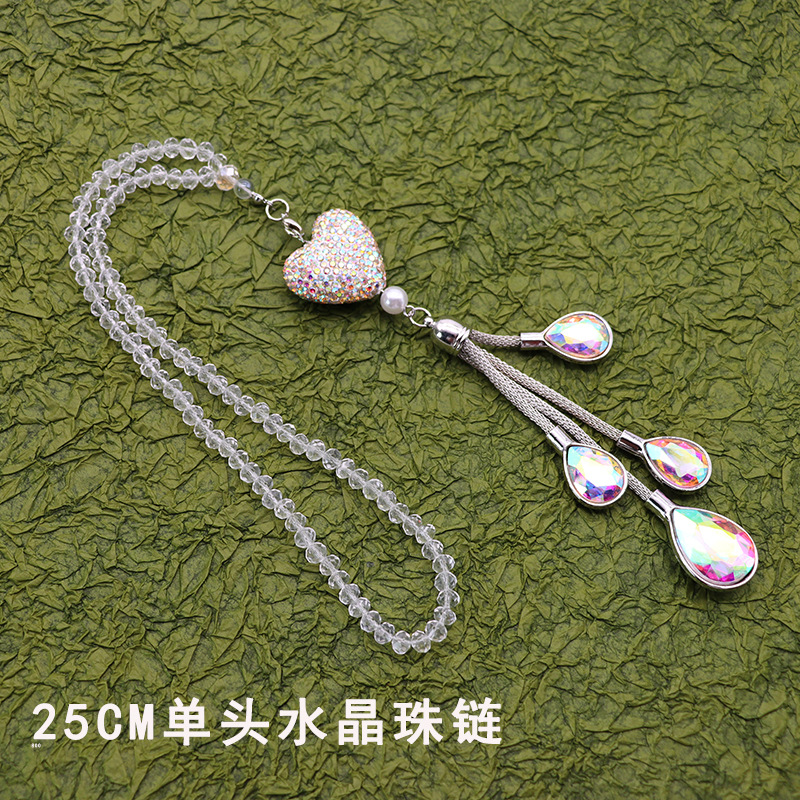 • AB 색 복숭아 하트 + AB 색 물방울 (25cm 크리스탈 비드 체인)
