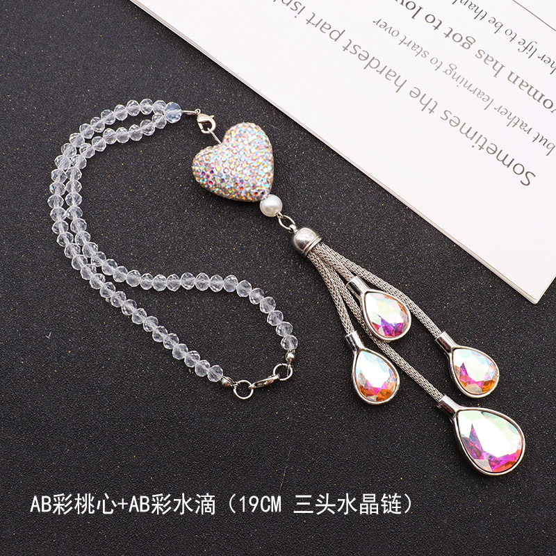 • AB 컬러 복숭아 하트 + AB 컬러 물방울 (19cm 3 머리 크리스탈 비드 체인)