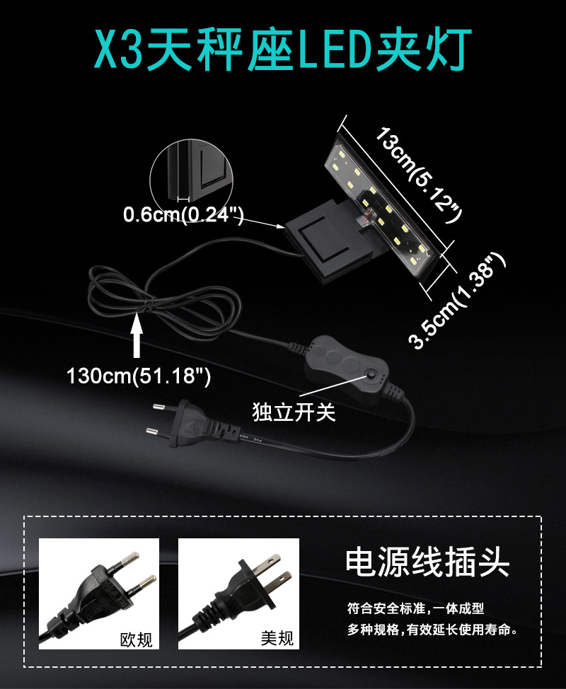 크로스 보더 X3 어항 램프 클립 램프 아마존 미니 물 잔디 램프 수족관 led 램프 방수 유럽과 미국 led 어항 램프