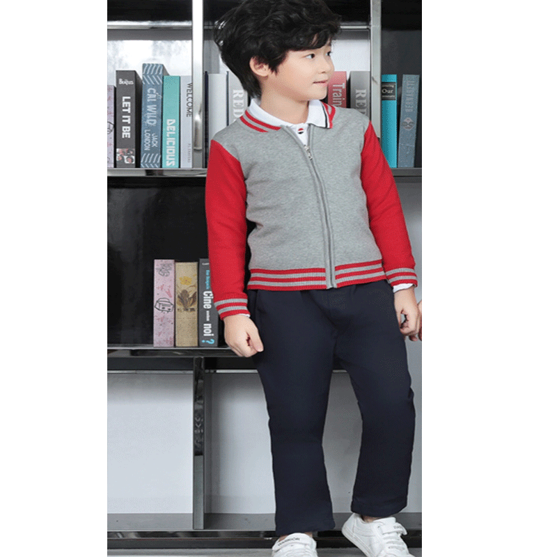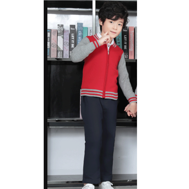 • 남학생용 빨간색 재킷과 바지 3종 세트