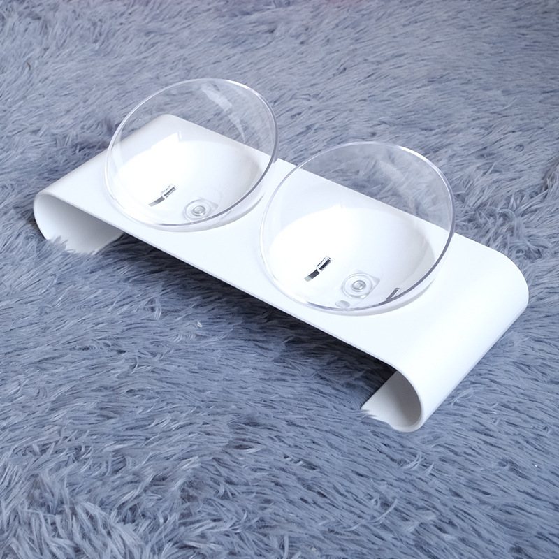 반려동물 고양이와 강아지를 위한 투명한 비스듬한 입구의 이중 그릇, 고양이 밥그릇과 물그릇, 목 보호 고양이 그릇, 급식기