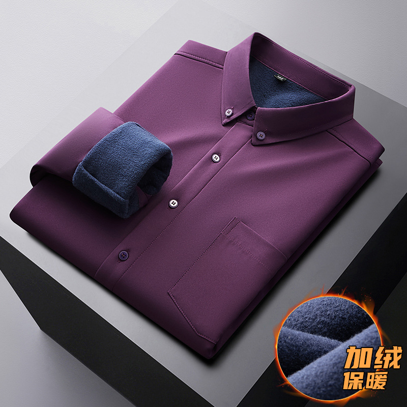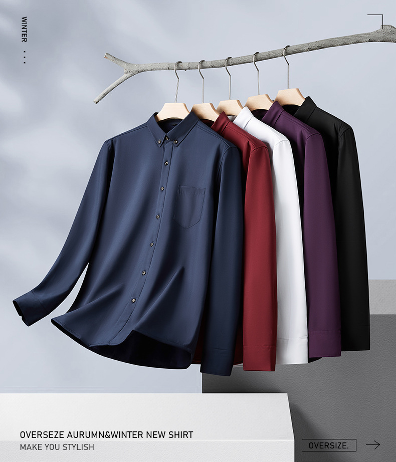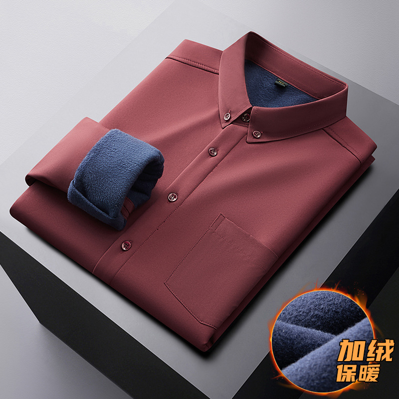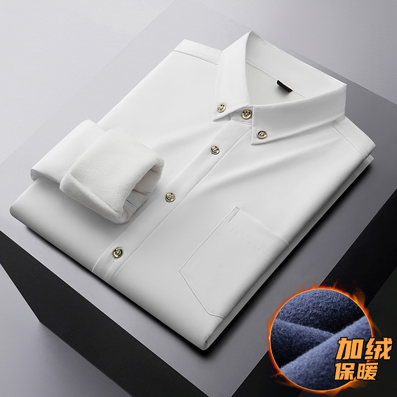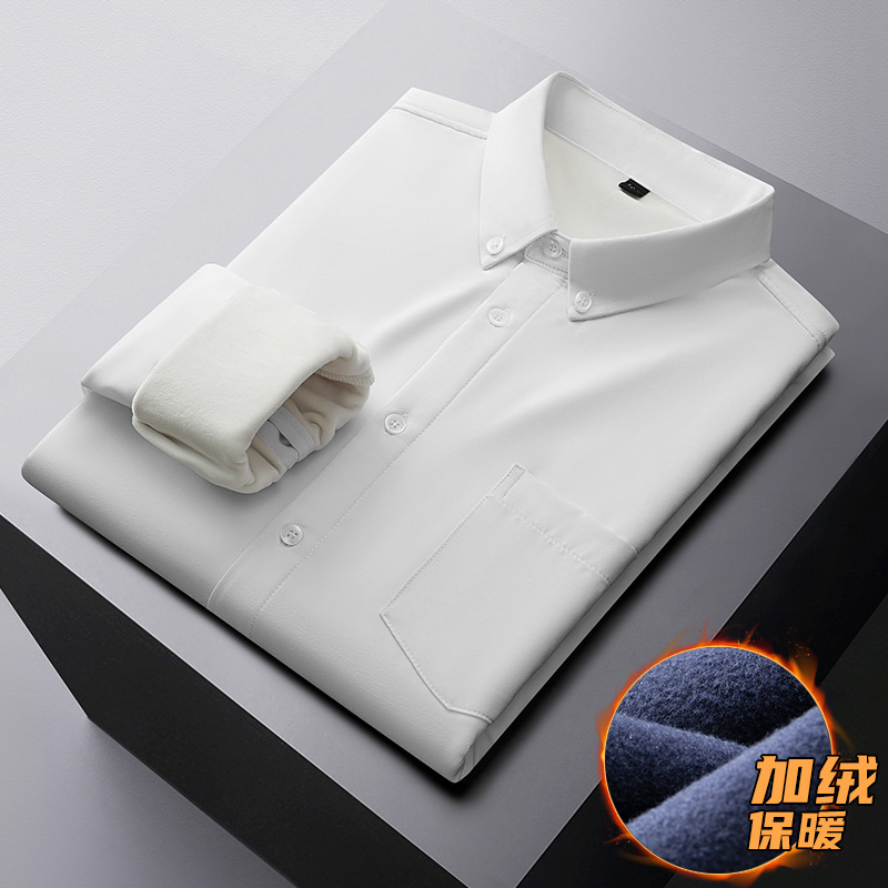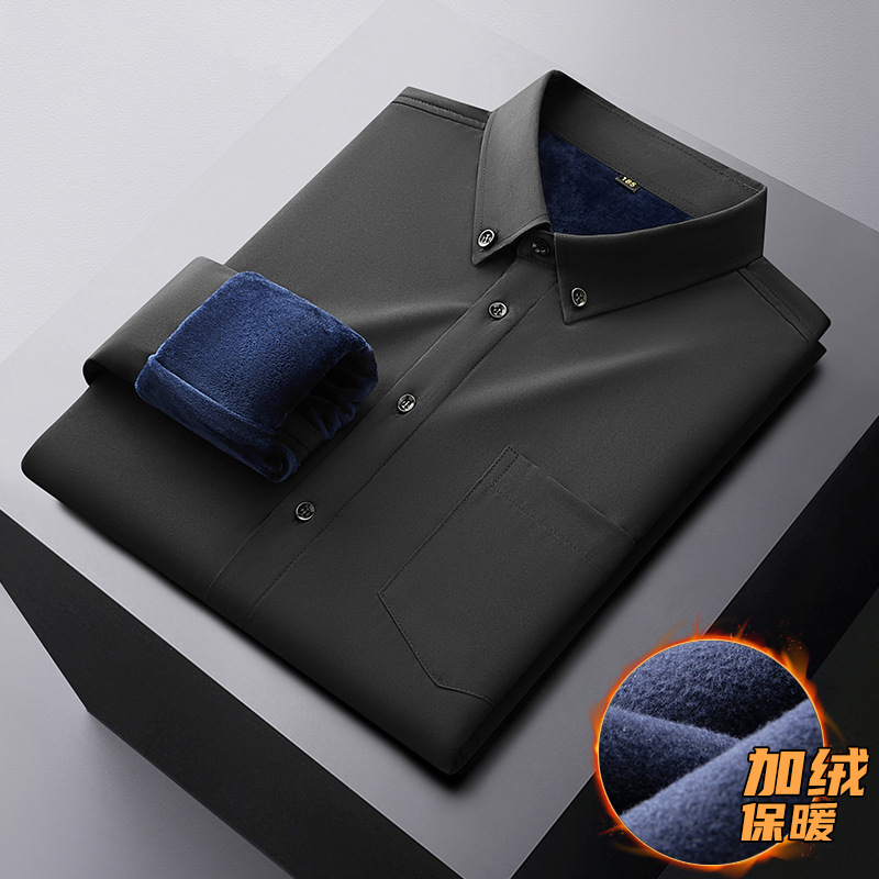 겨울 기모 두꺼운 플러스 사이즈 긴팔 셔츠 남자의 비즈니스 캐주얼 단색 모든 매치 멀티 컬러 지방 초대형 셔츠 지방스토어 가기