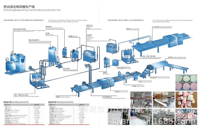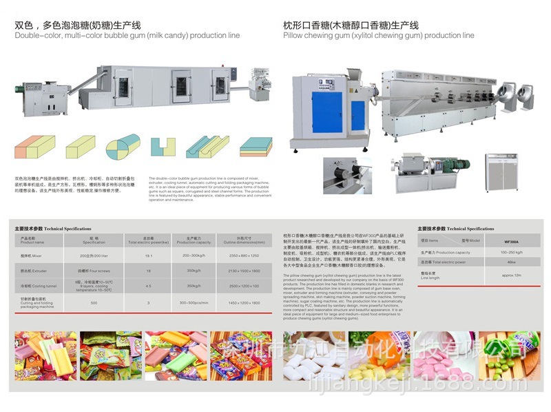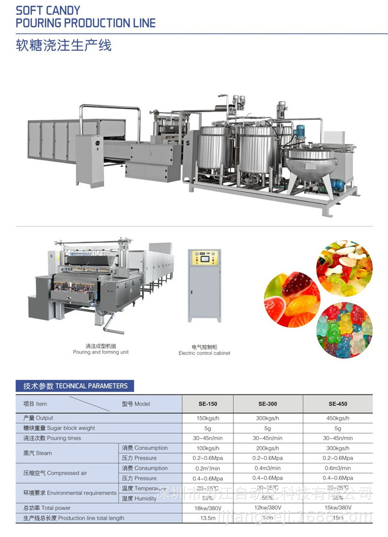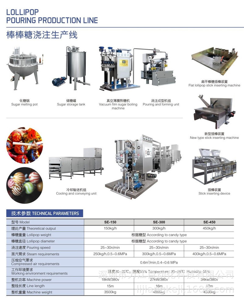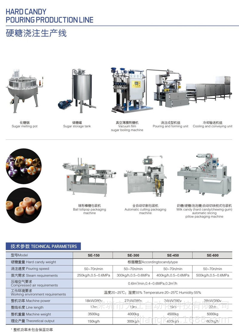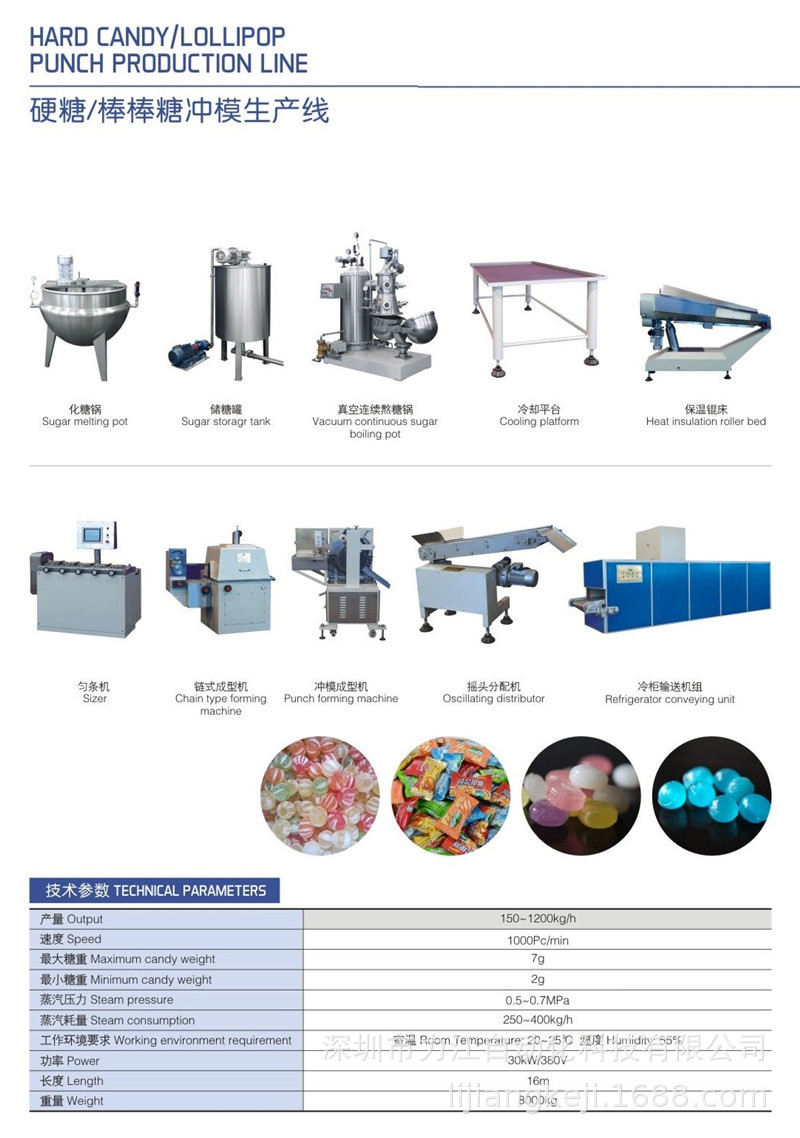 硬糖、棒棒糖、太妃糖、牛轧糖、棉花糖、软糖、橡皮糖、巧克力糖等等糖果生产线