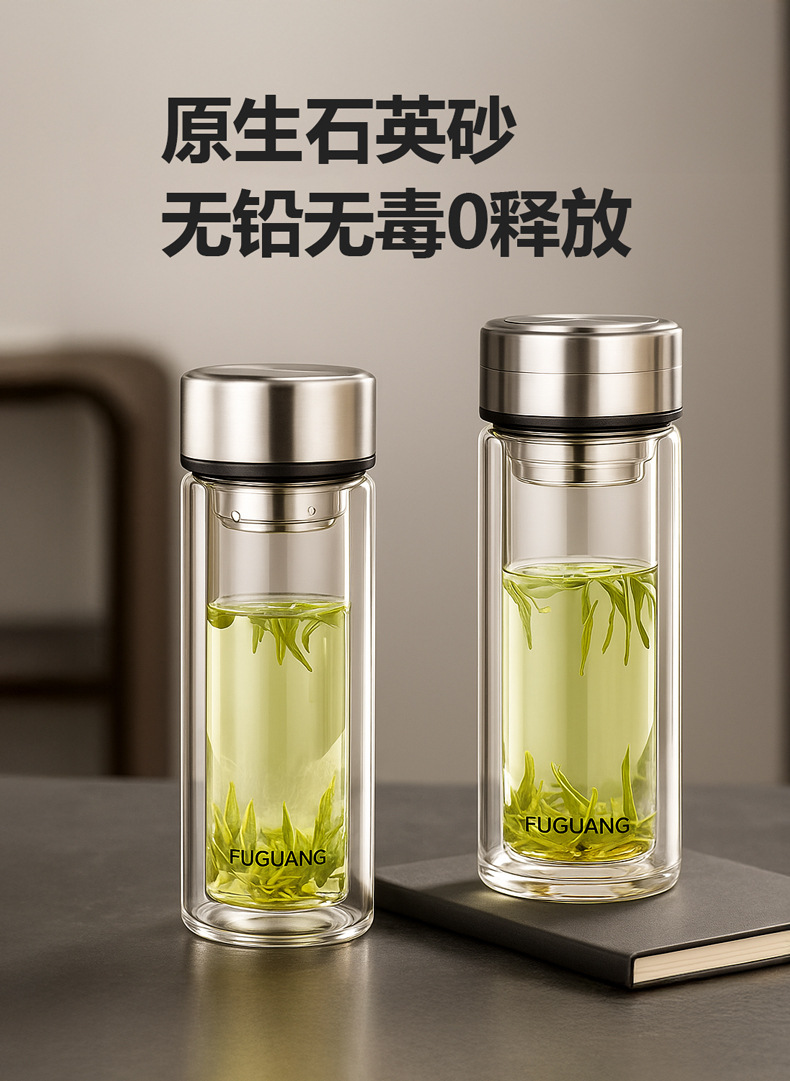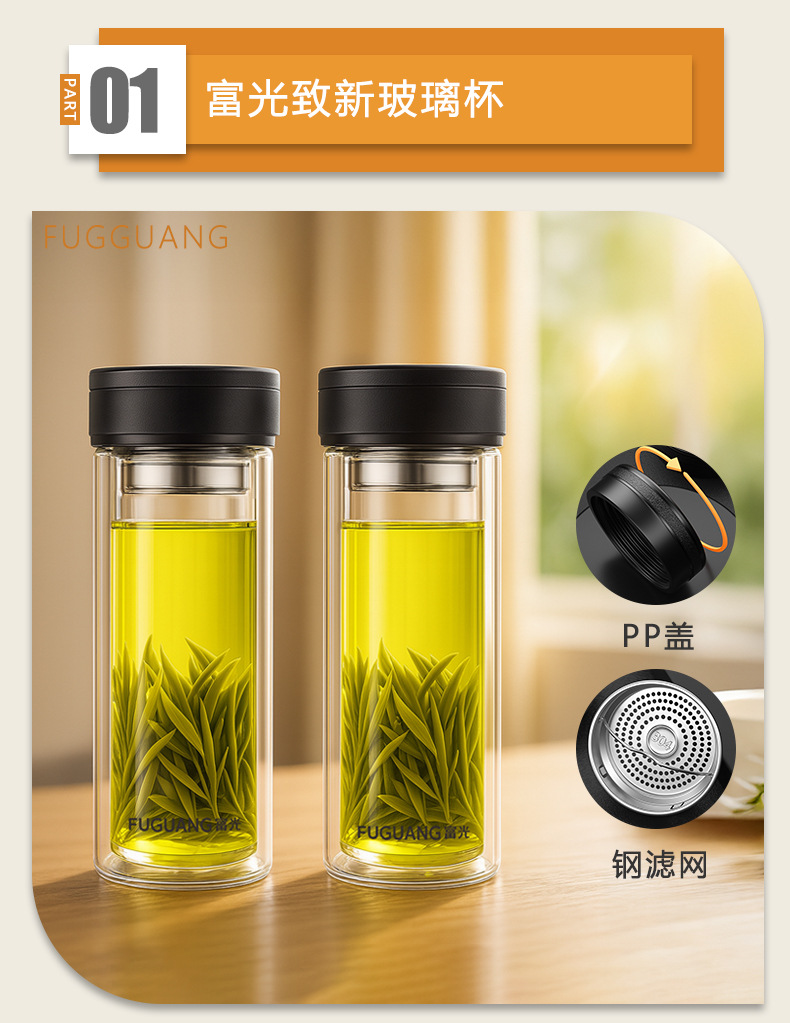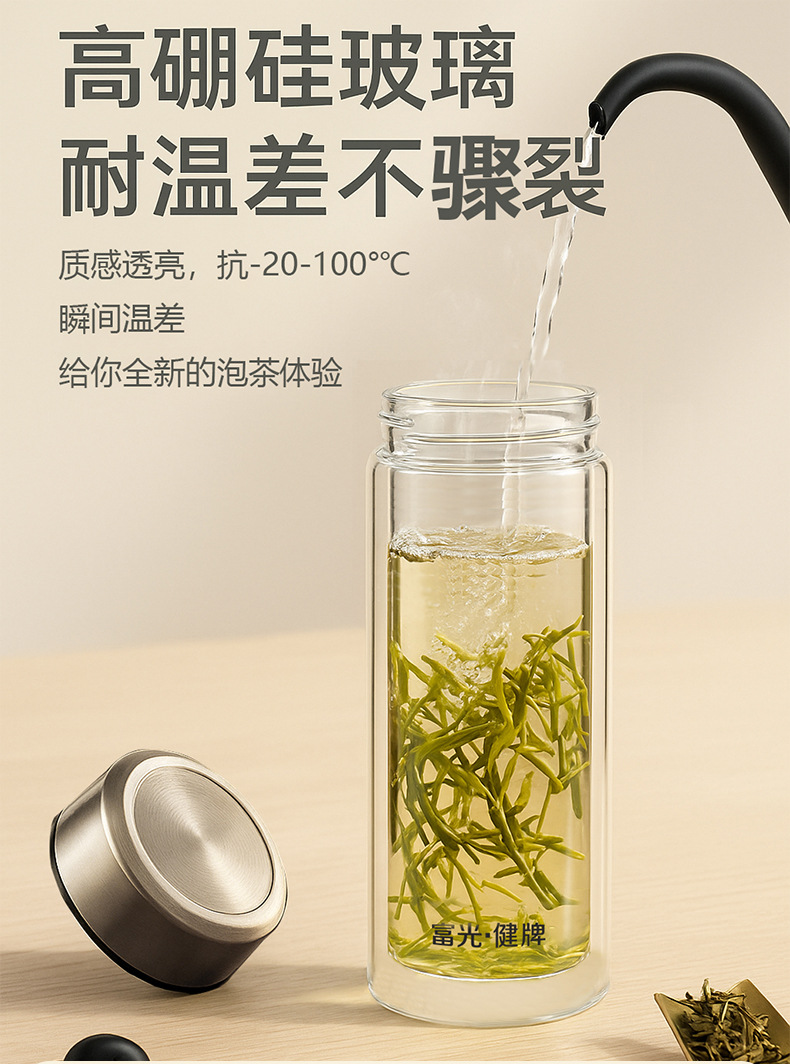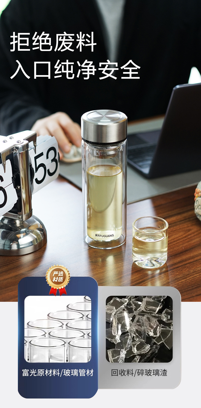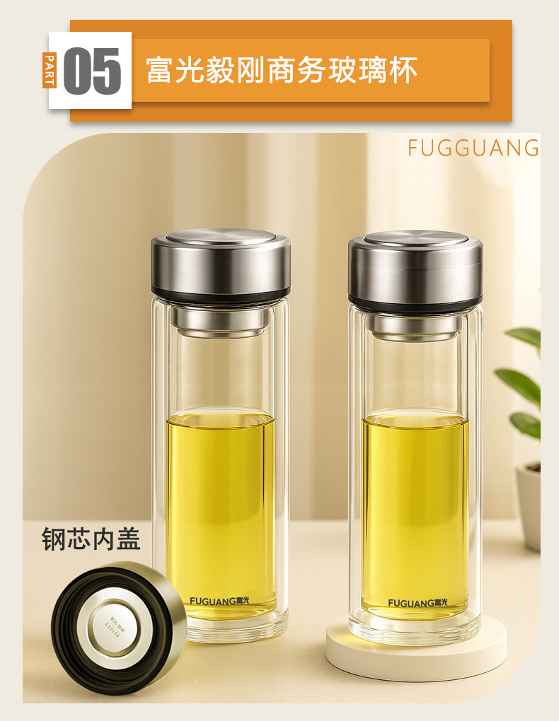 Fuguang 이중층 유리 남성용 비즈니스 워터 컵 고붕규산염 고온 방지 컵 티 컵 회사 선물 맞춤형 컵스토어 가기