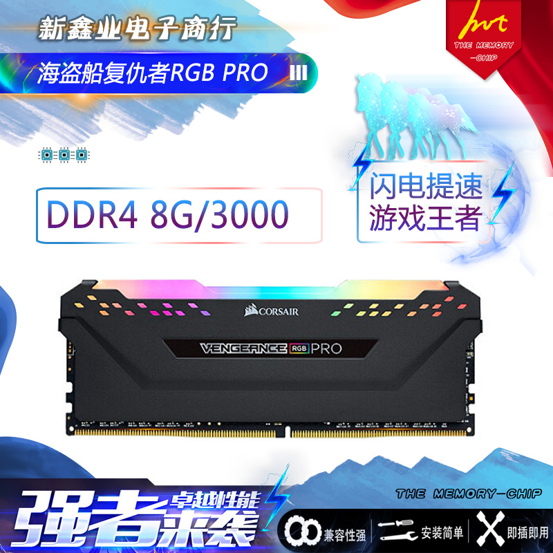 미국 해적선 RGB PRO DDR4 3000 8G 데스크탑 컴퓨터 메모리 스트립 단일 스트립스토어 가기