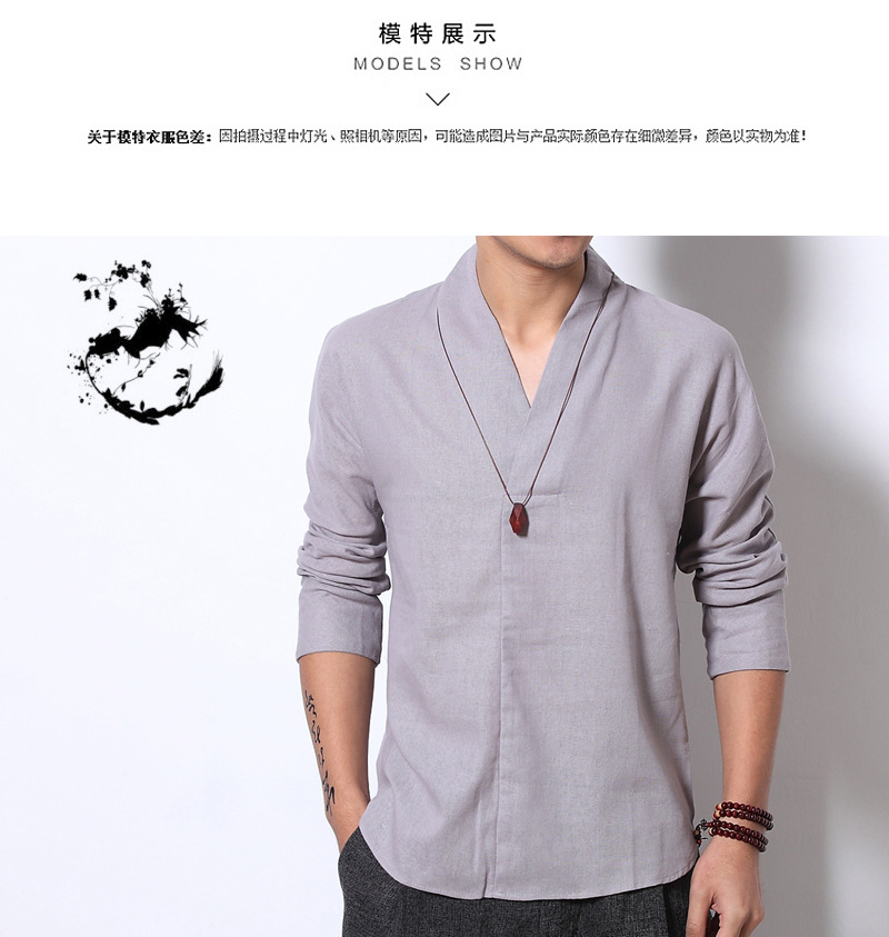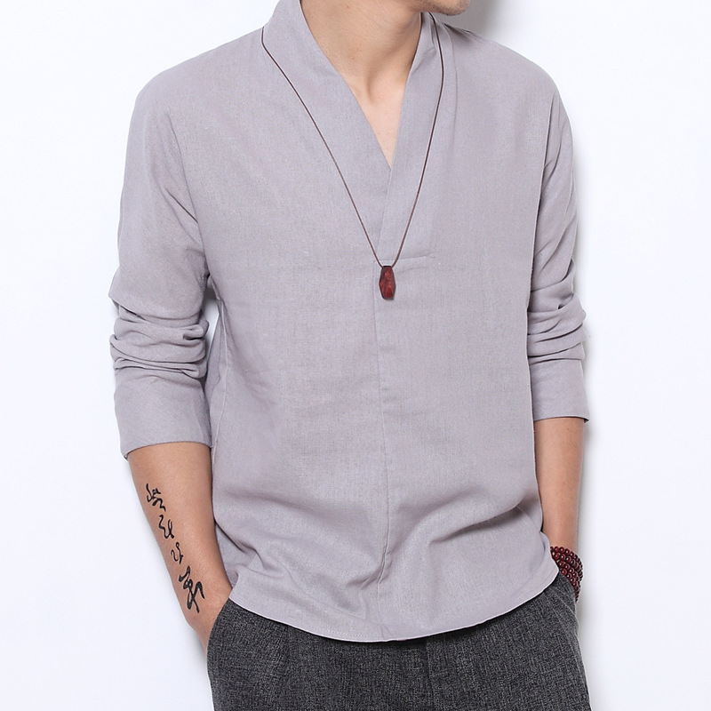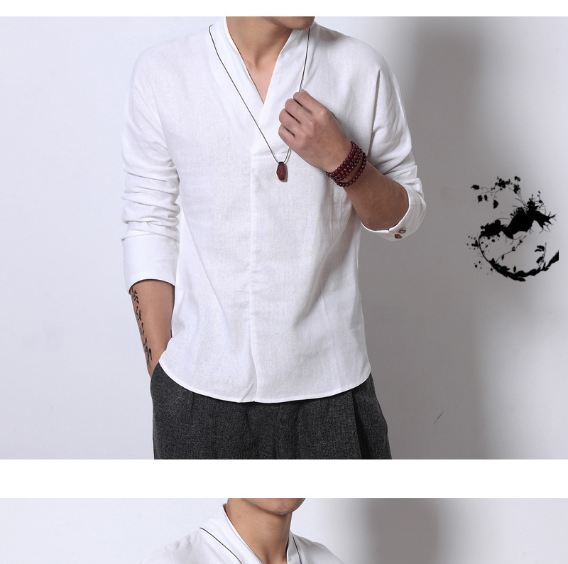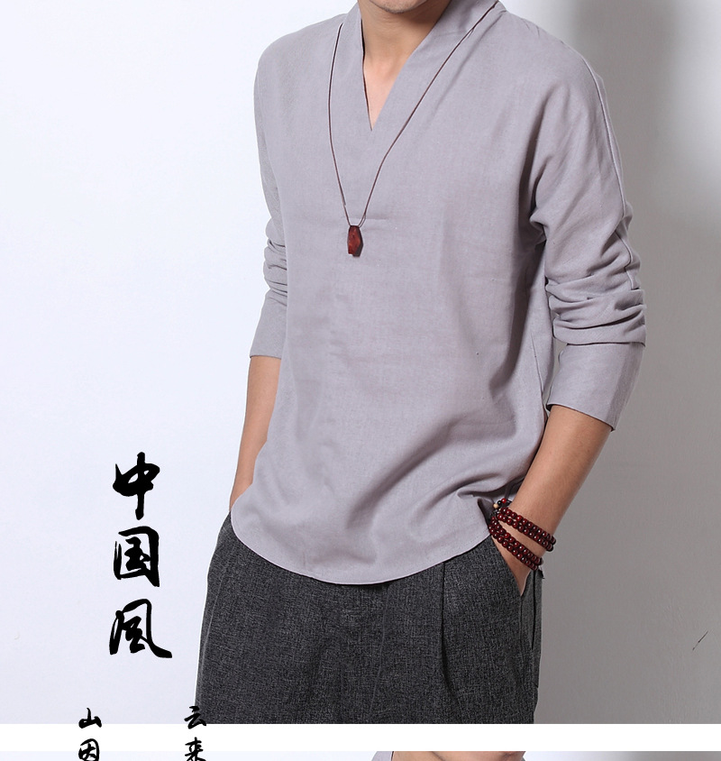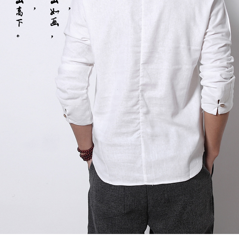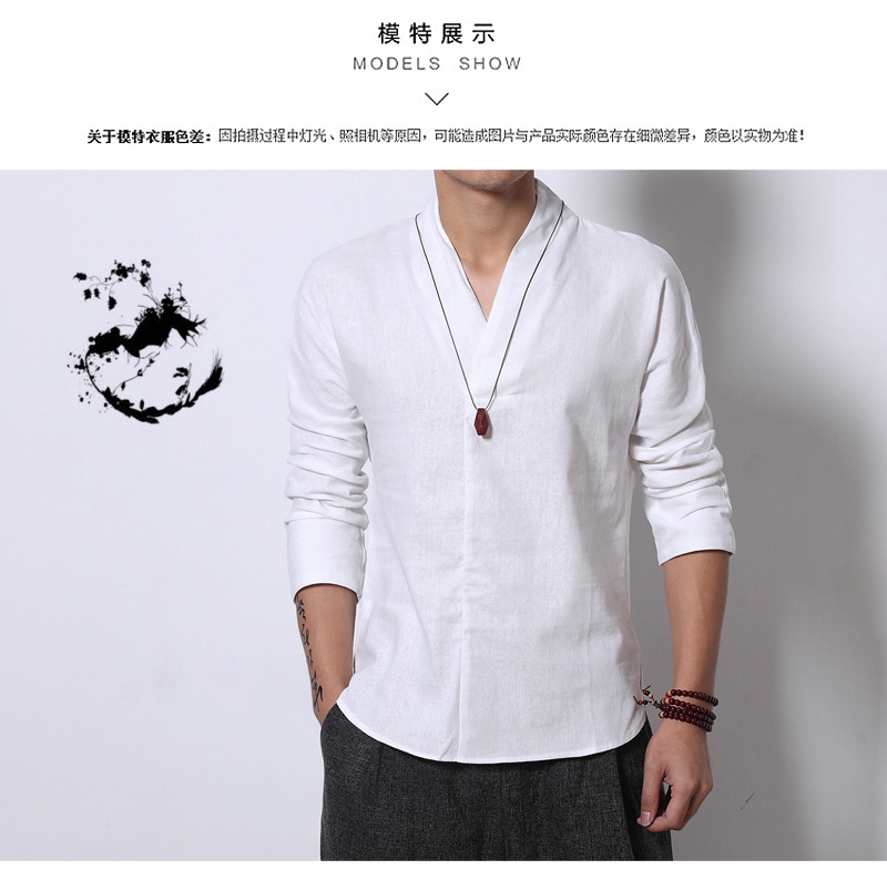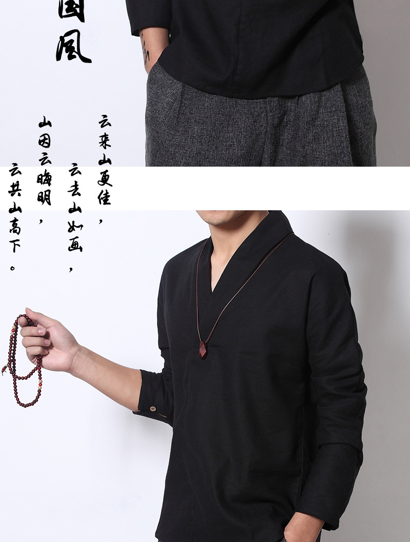 2019 여름 신사복 긴 소매 셔츠 빈티지 리넨 중국 스타일 남성 Hanfu 코튼 린넨 캐주얼 당나라 정장 남성스토어 가기