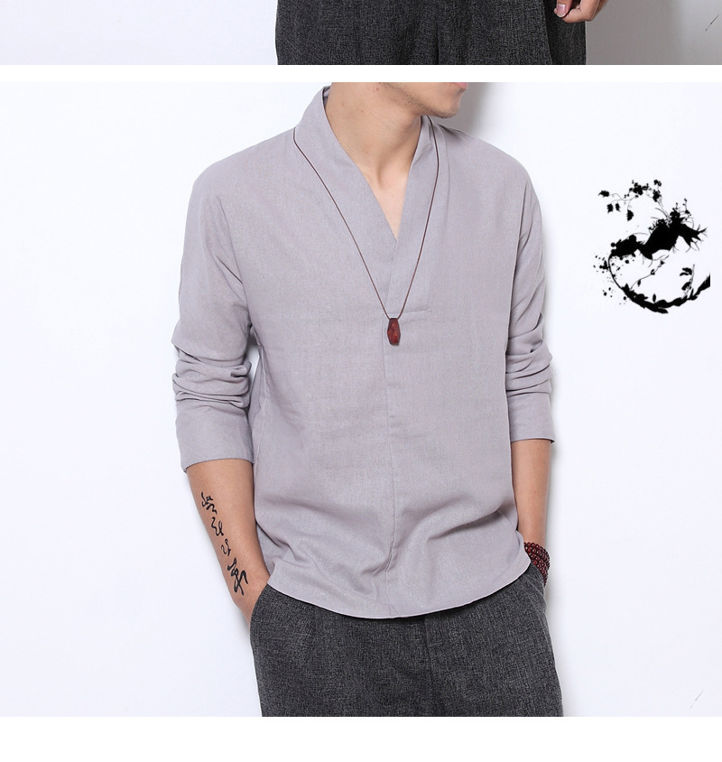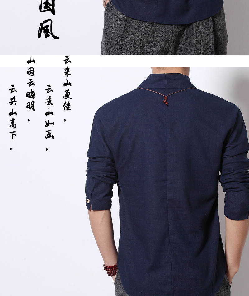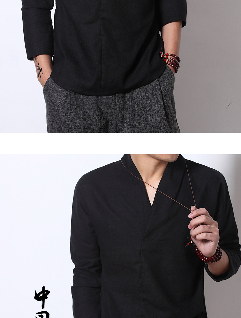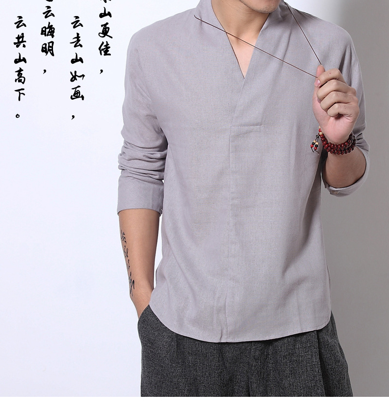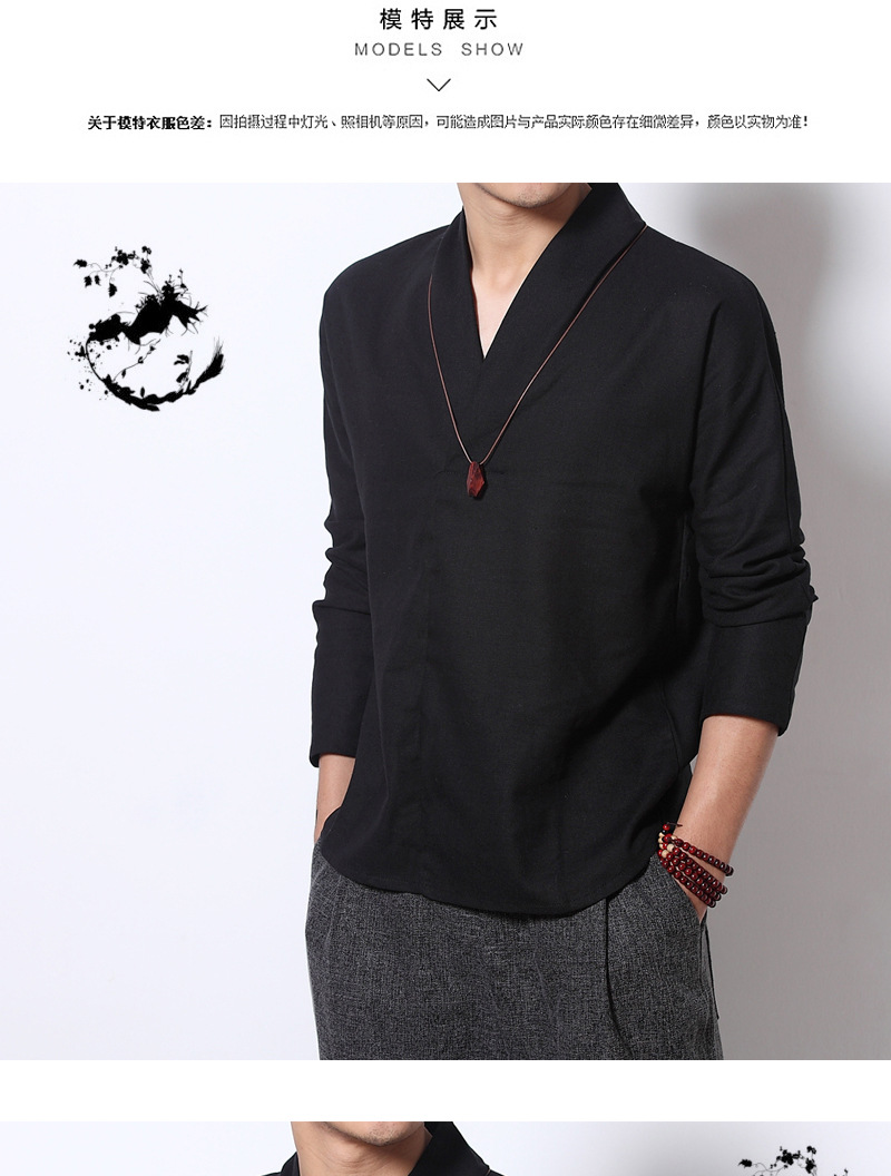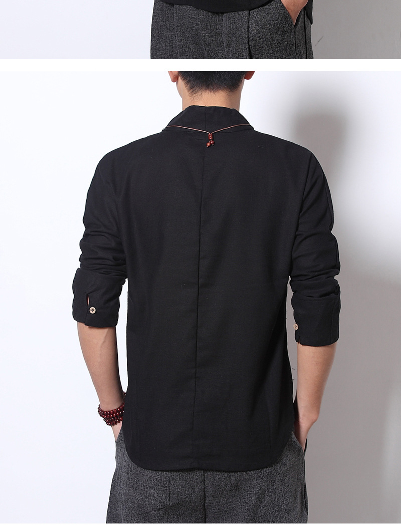 2019 여름 신사복 긴 소매 셔츠 빈티지 리넨 중국 스타일 남성 Hanfu 코튼 린넨 캐주얼 당나라 정장 남성스토어 가기