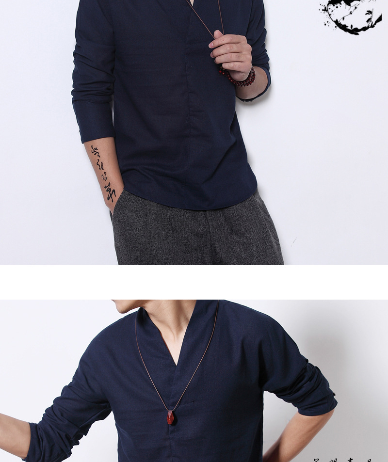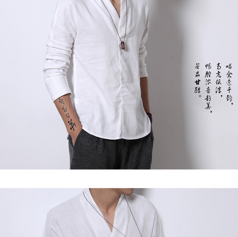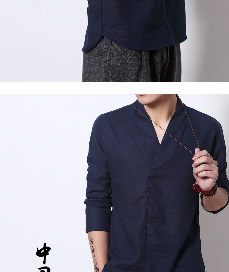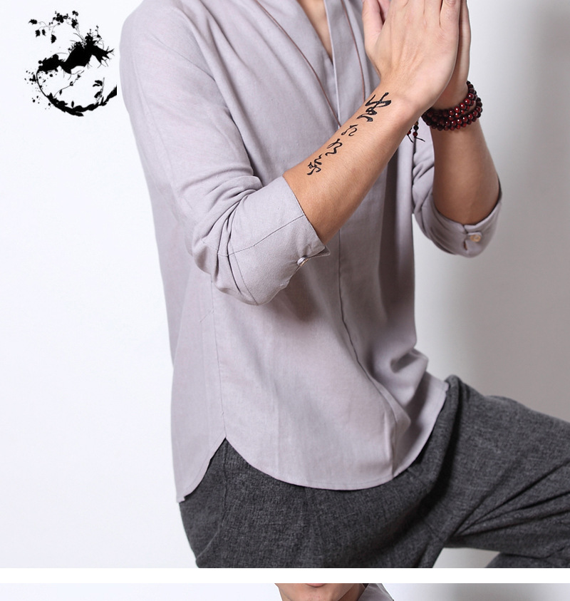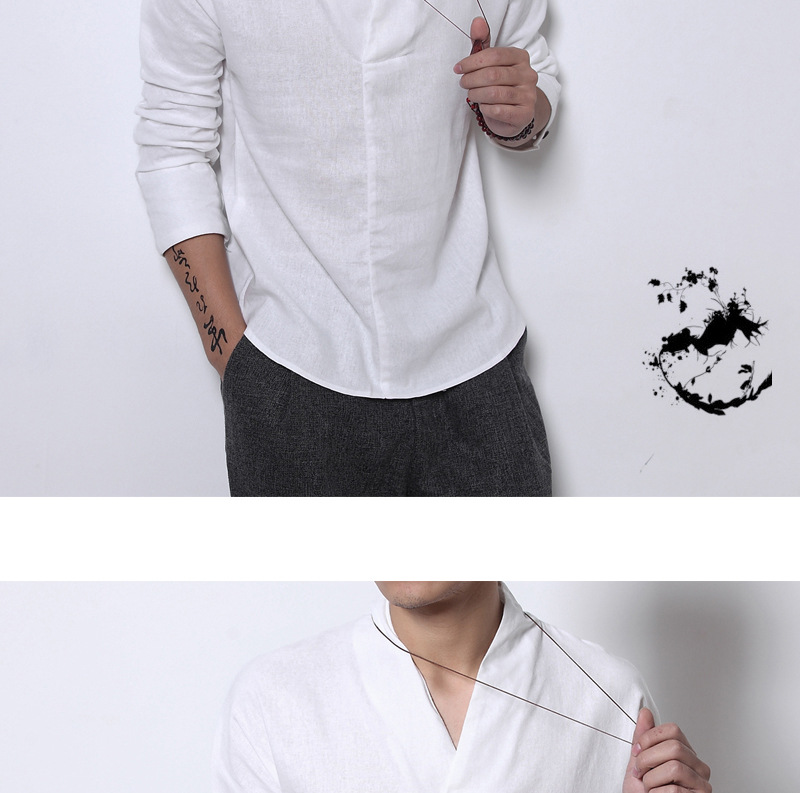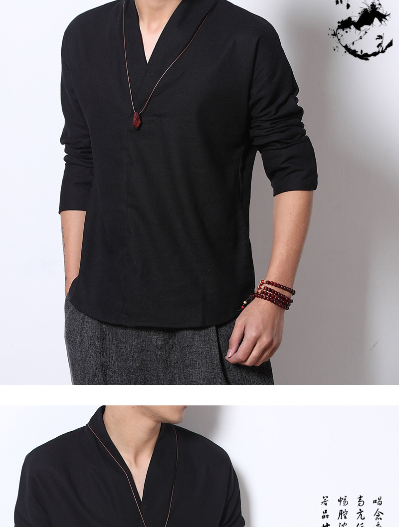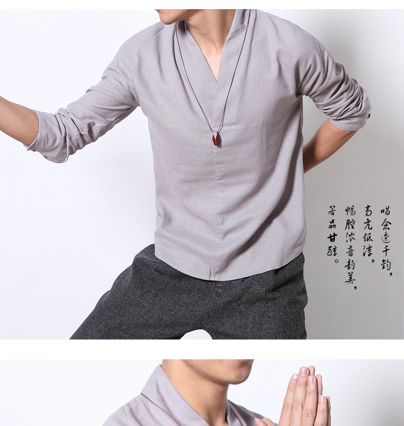 2019 여름 신사복 긴 소매 셔츠 빈티지 리넨 중국 스타일 남성 Hanfu 코튼 린넨 캐주얼 당나라 정장 남성스토어 가기