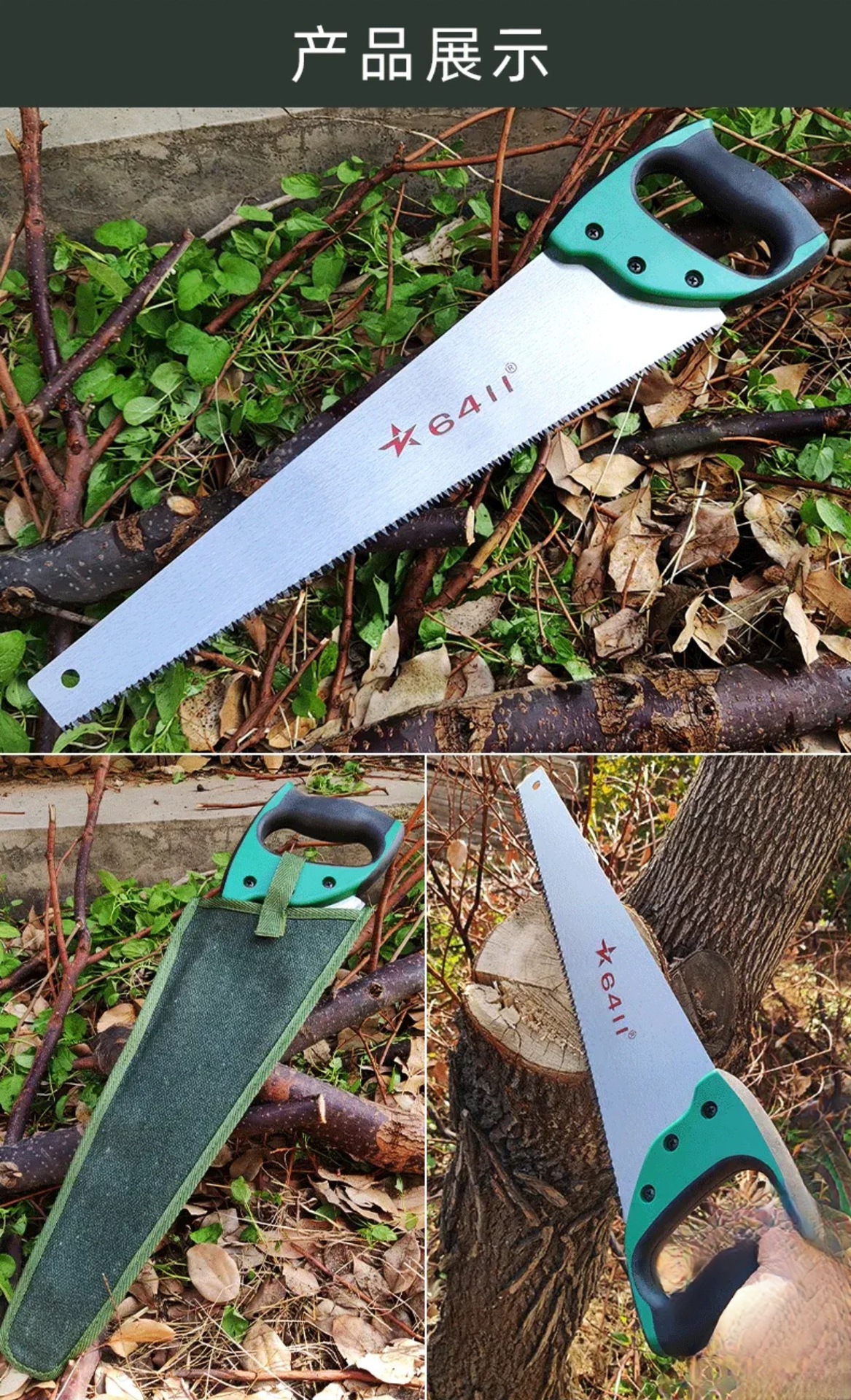 6411 공장 휴대용 다기능 핸드 톱 목공 톱 야외용 나무 절단용 날카로운 스테인리스 J045스토어 가기