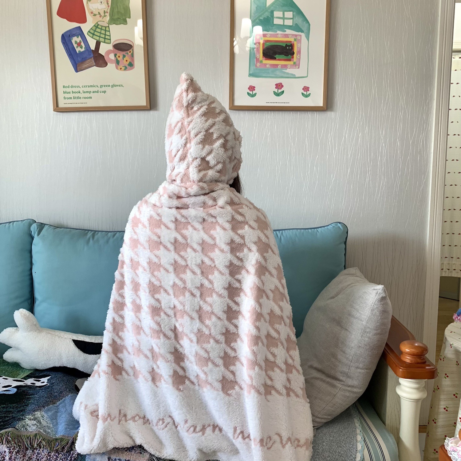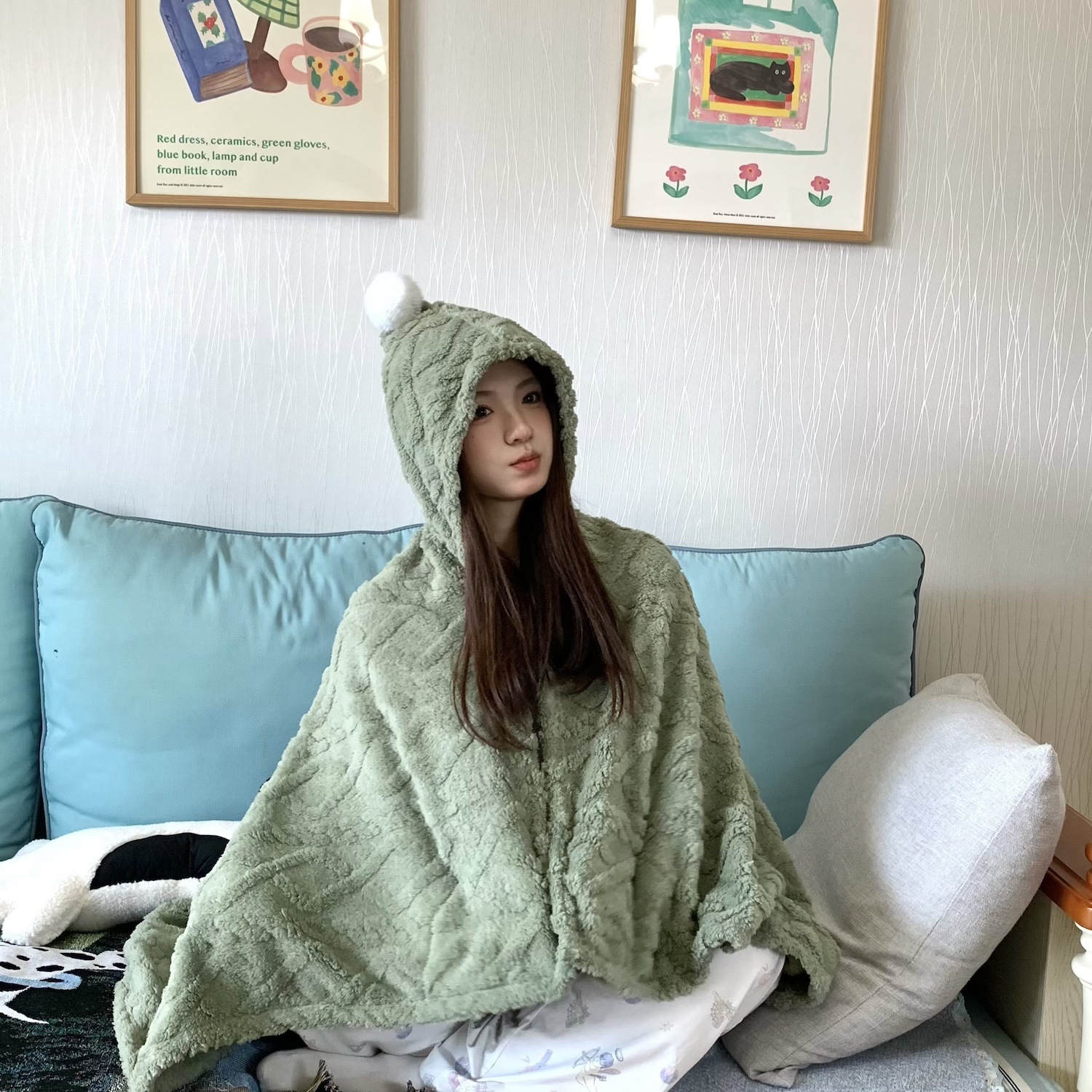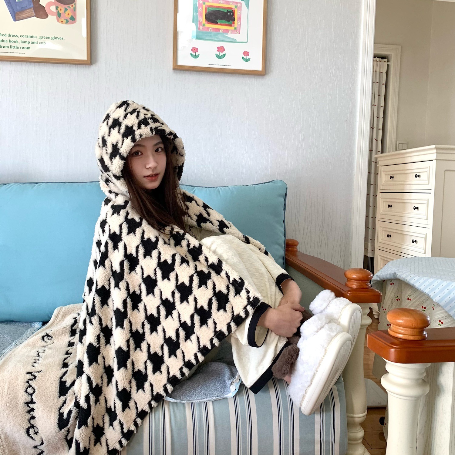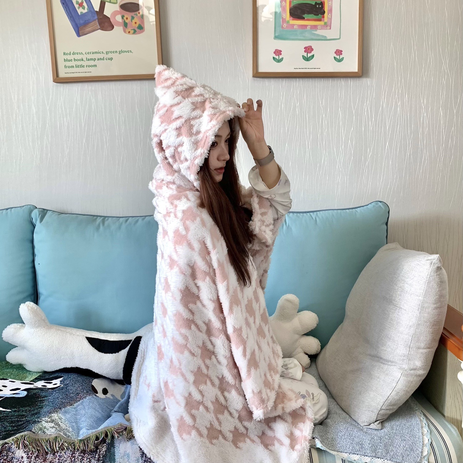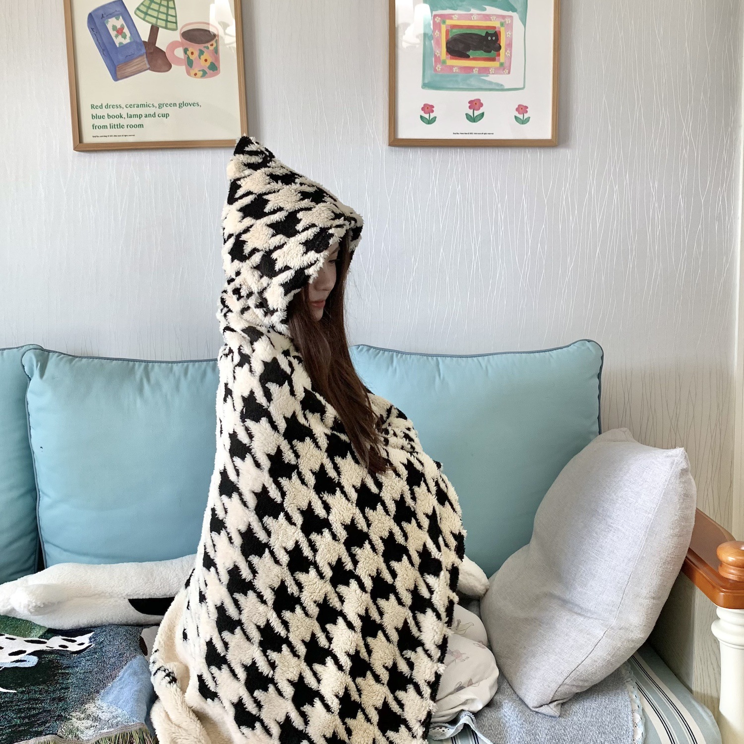 봄과 가을 두꺼운 다기능 격자 무늬 목도리 담요 사무실 양털 낮잠 담요 커버 담요 소파 담요 버클 게으른 담요