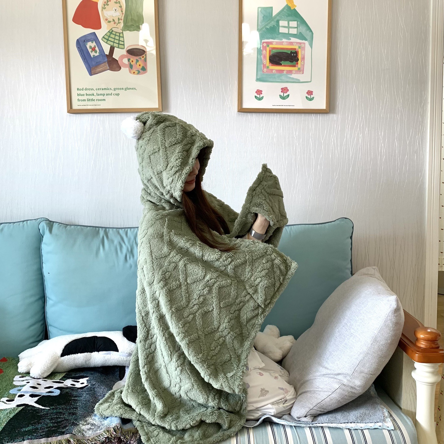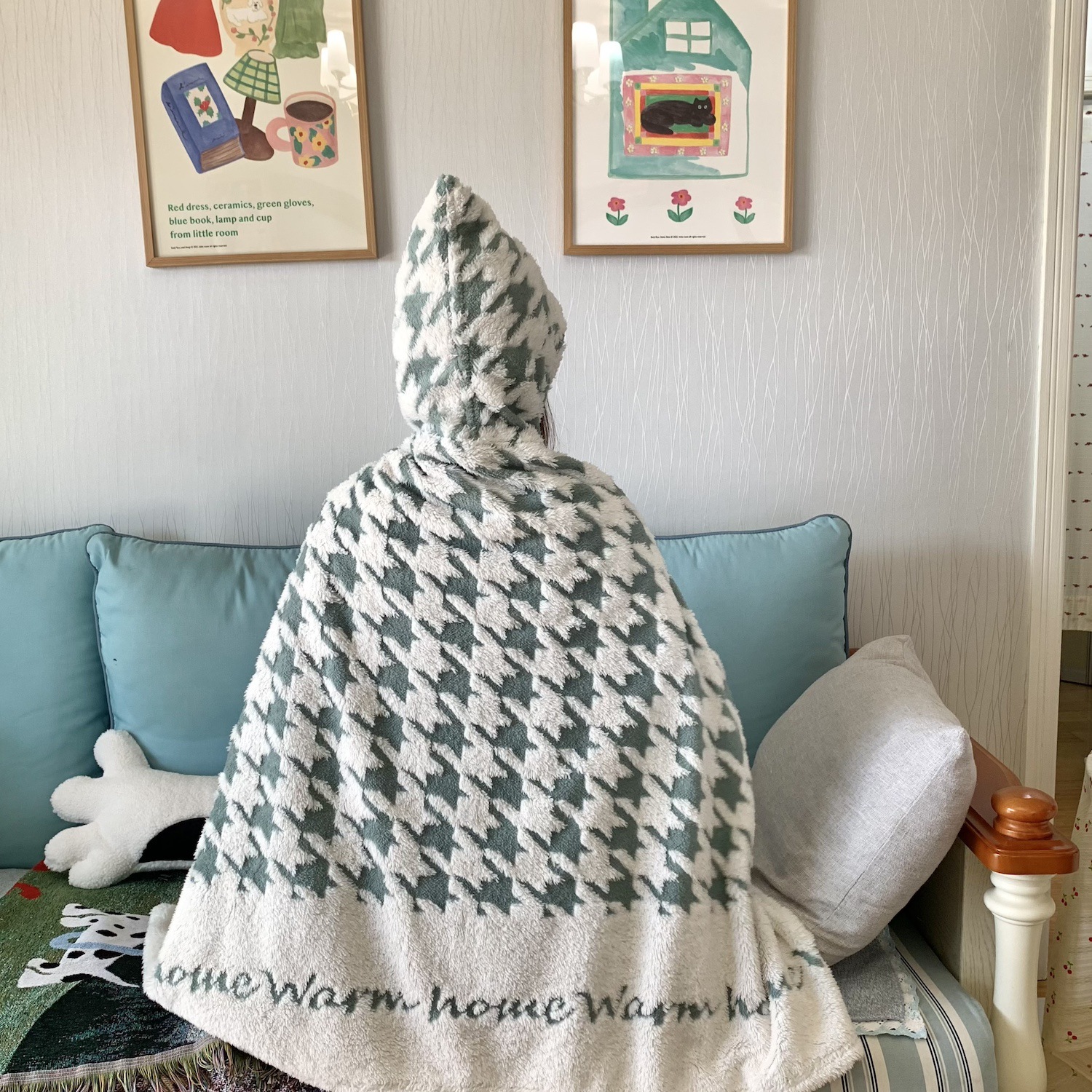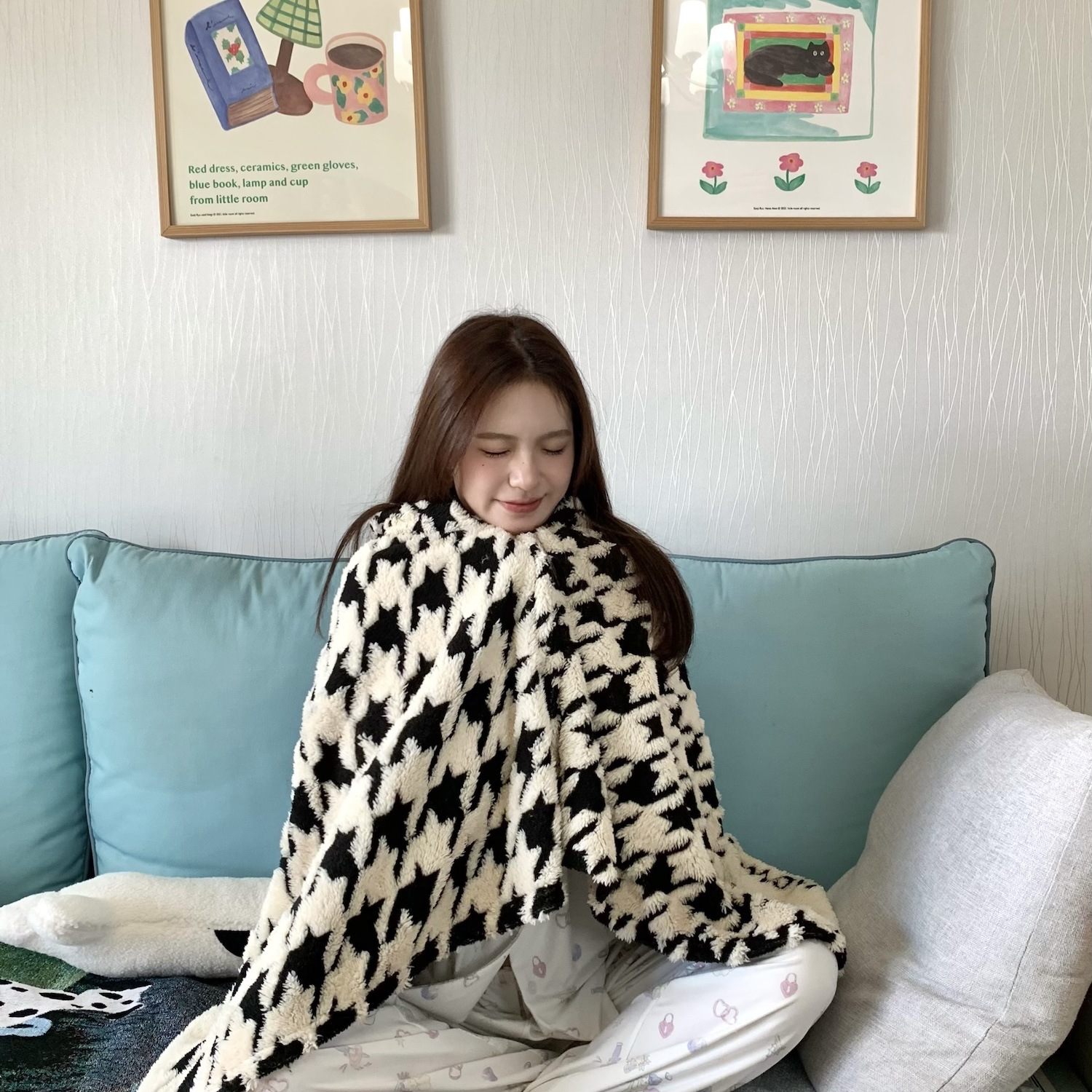 봄과 가을 두꺼운 다기능 격자 무늬 목도리 담요 사무실 양털 낮잠 담요 커버 담요 소파 담요 버클 게으른 담요스토어 가기