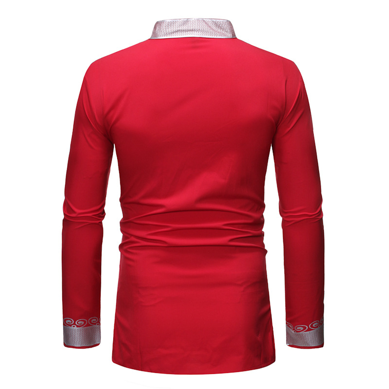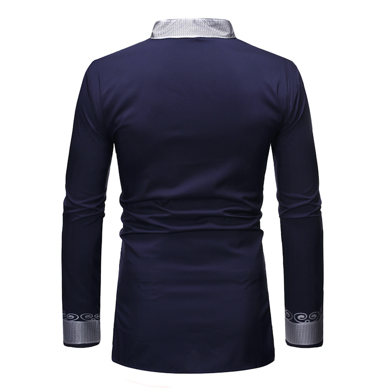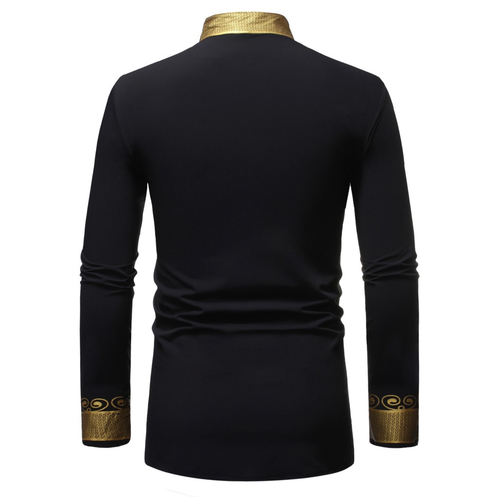 이베이 남성 가을 스타일 스탠드 칼라 풀오버 셔츠 남성용 아프리카 부족 추장 프린트 가운 ZT-FZ38