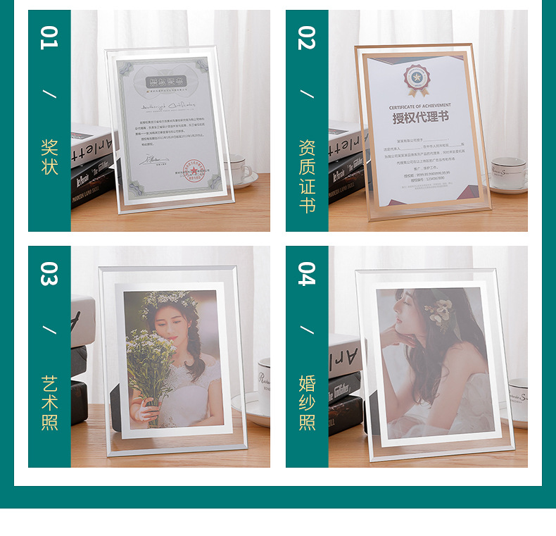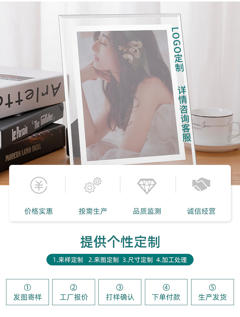 크리스탈 유리 투명 사진 프레임 7 인치 58 인치 6 인치 북유럽 스타일 어린이 현대 장식 유리 사진 프레임