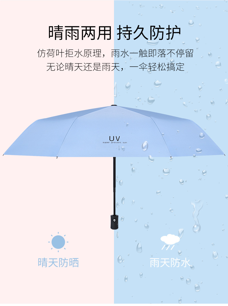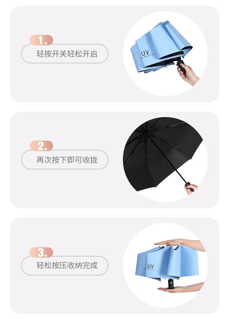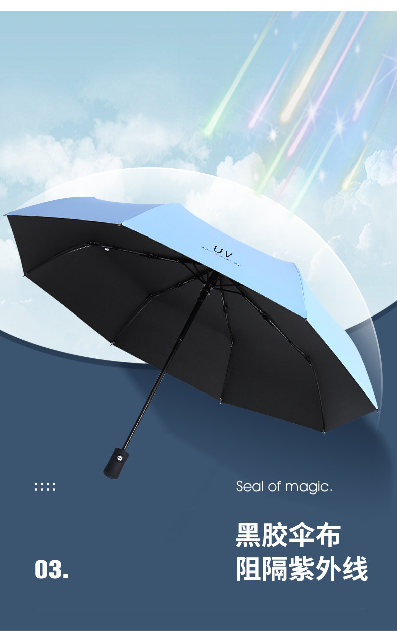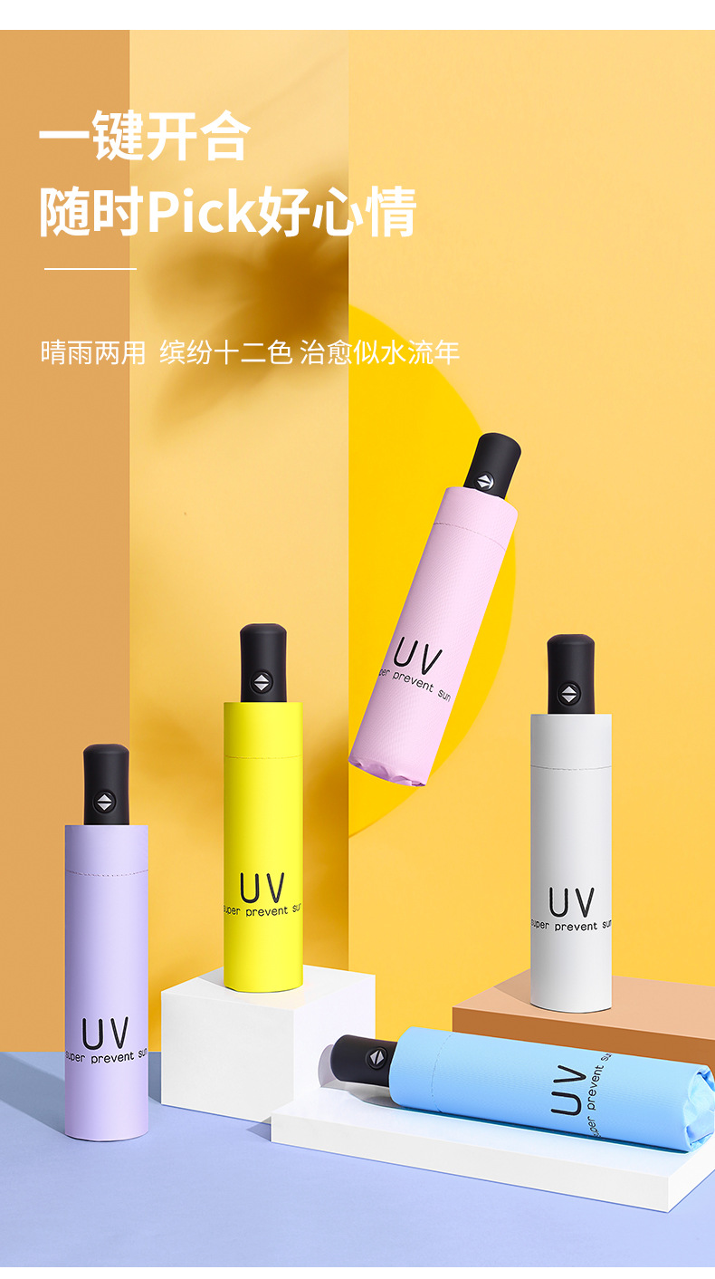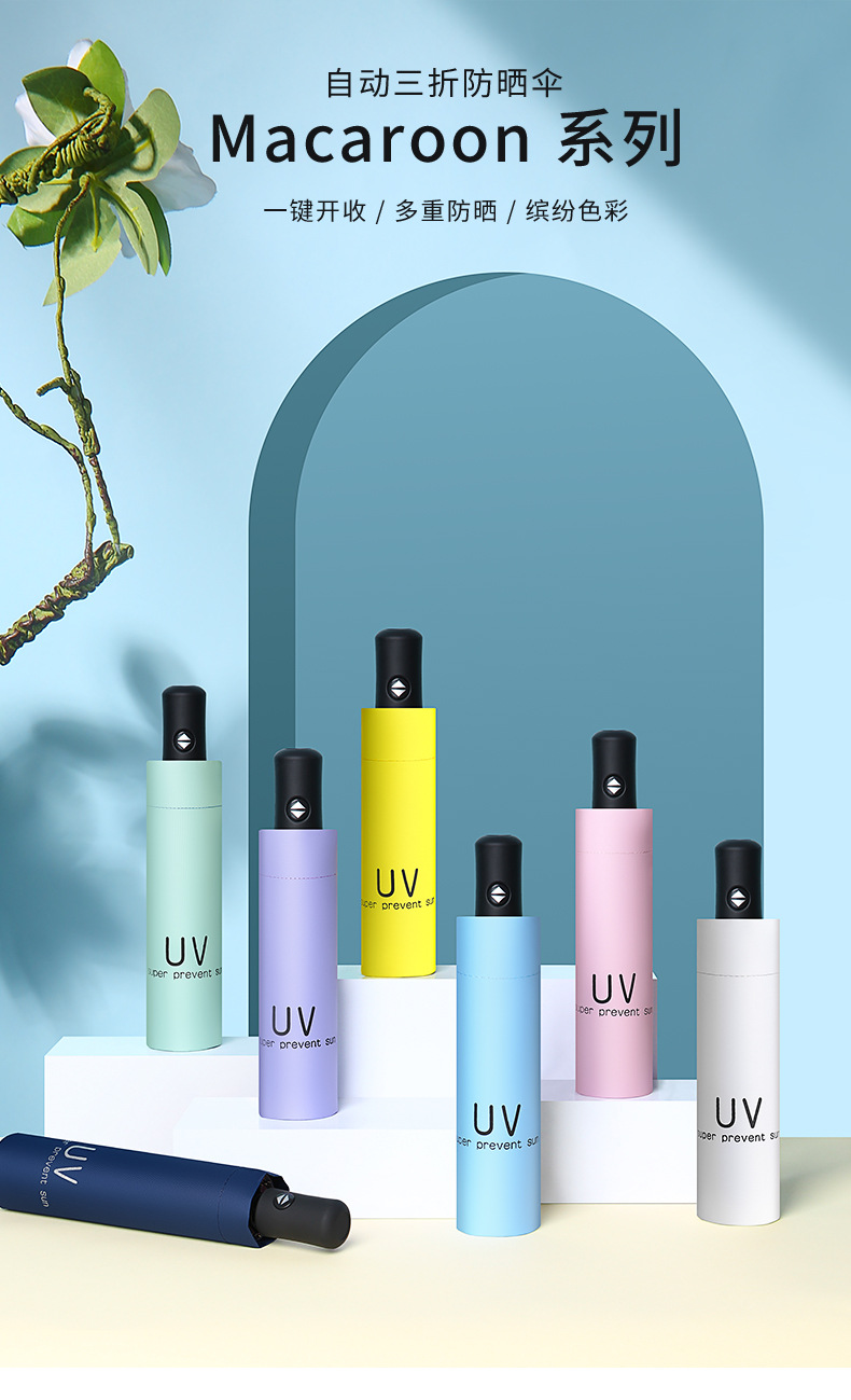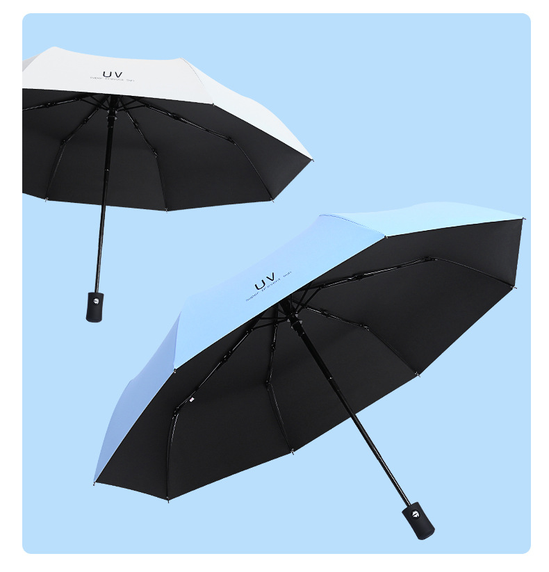 완전 자동 대형 검은 접착제 맑은 우산 도매 안티 UV 차양 자외선 차단제 세 접는 태양 우산 어린이 우산스토어 가기