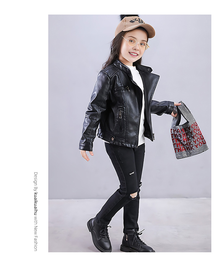 아동복 아동 가죽 자켓 2025 봄, 가을 새로운 스타일 소년과 소녀 스탠드 칼라 오토바이 자켓 서양식 자켓 제조 업체 재고 있음