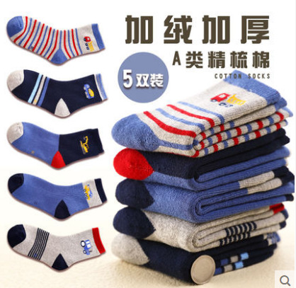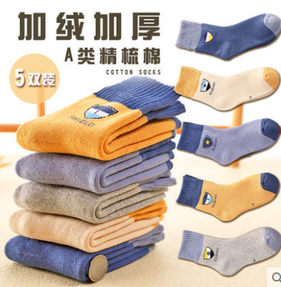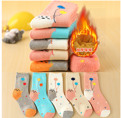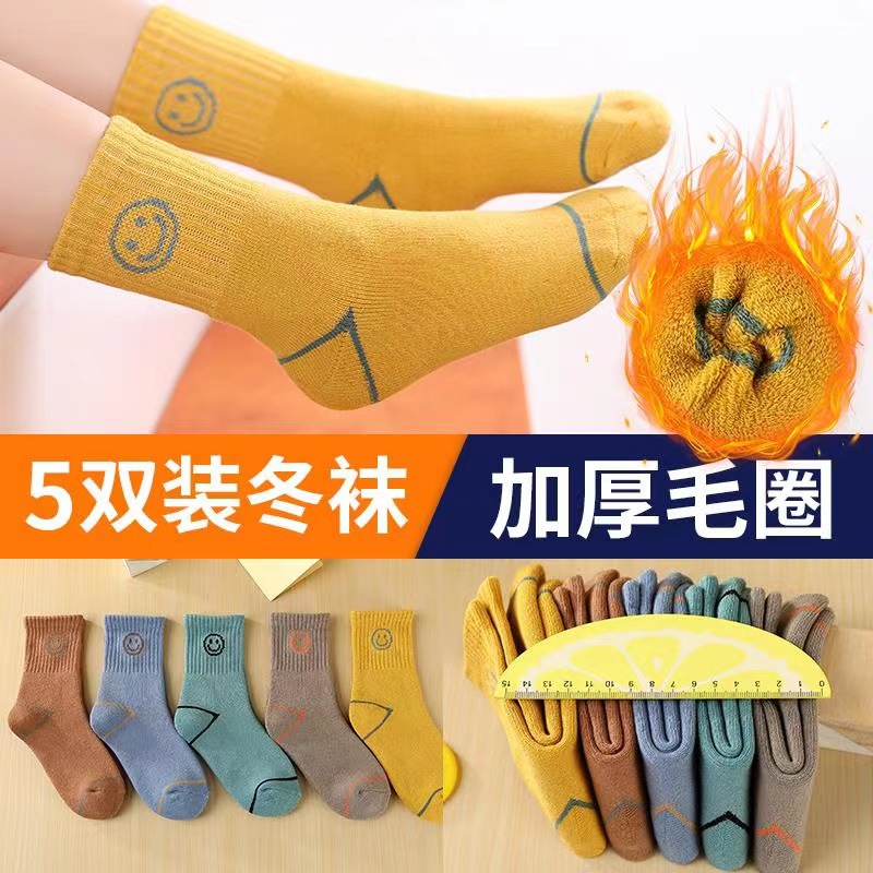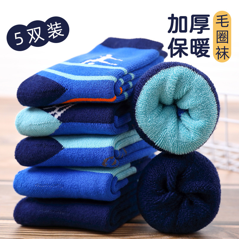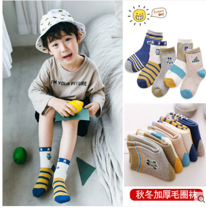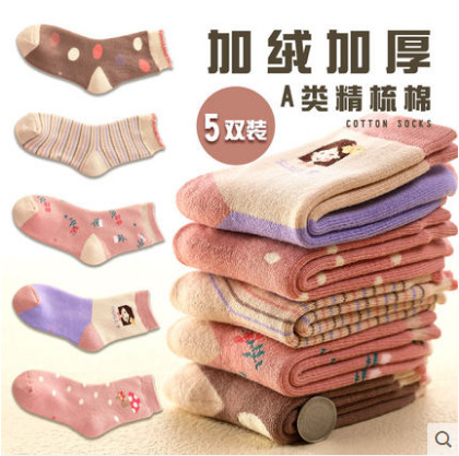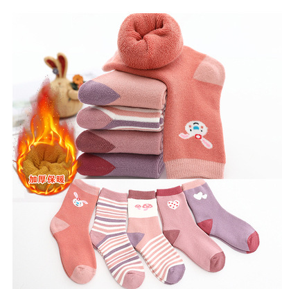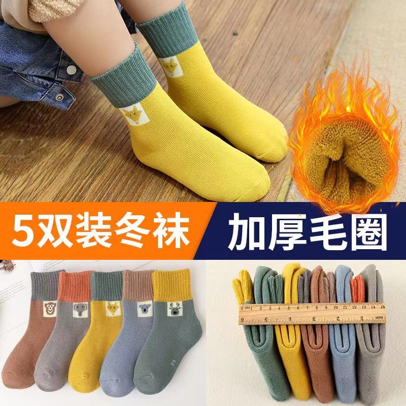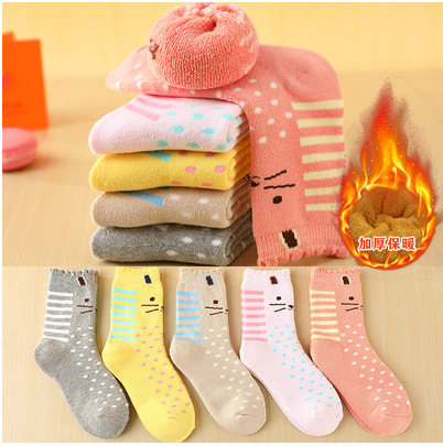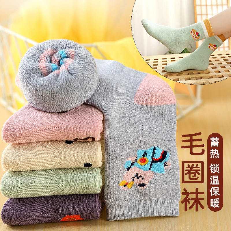 어린이 양말 봄과 가을 기모 두껍게 남자와 여자의 나이 많은 어린이 수건 양말 빗질 면화 두꺼운 따뜻한 아기 테리