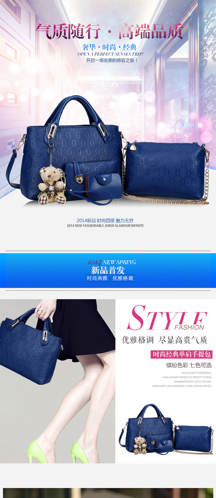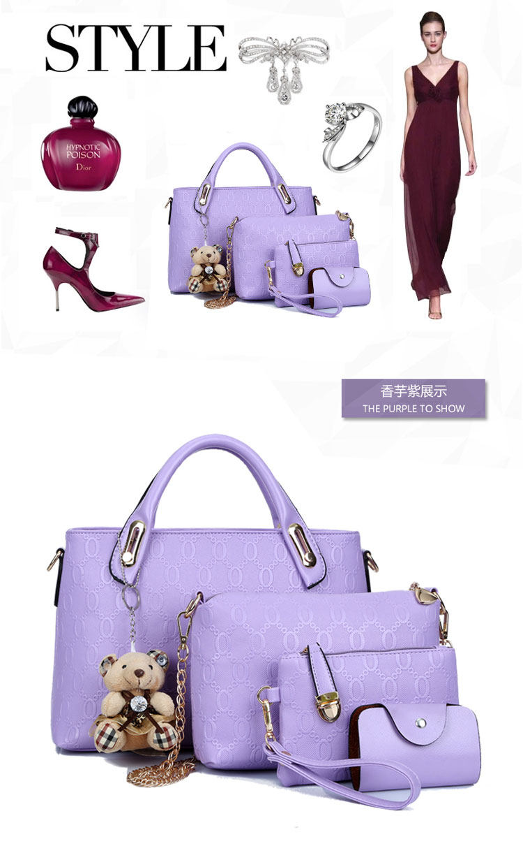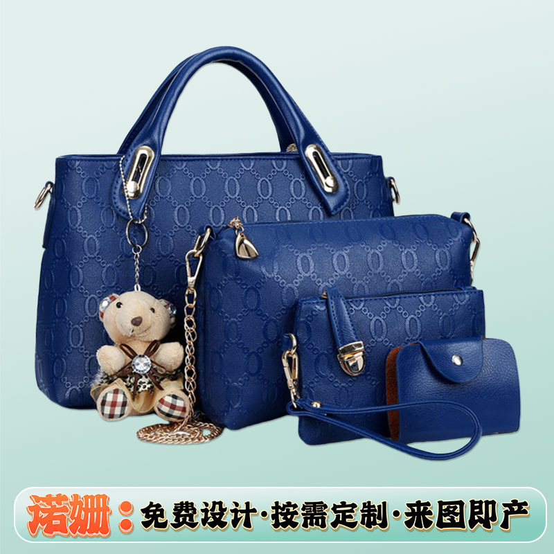 新款欧美风范时尚女包 小熊吊坠潮流压花子母包四件套