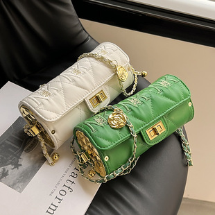 复古链条圆筒包包女2022新款轻奢质感法棍包菱格锁扣单肩斜挎包