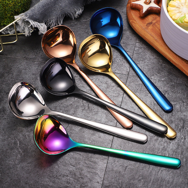 304不锈钢汤勺 长柄加厚圆勺子镀钛幻彩大头加深喝汤勺喝粥大汤匙¥5.5立即采购