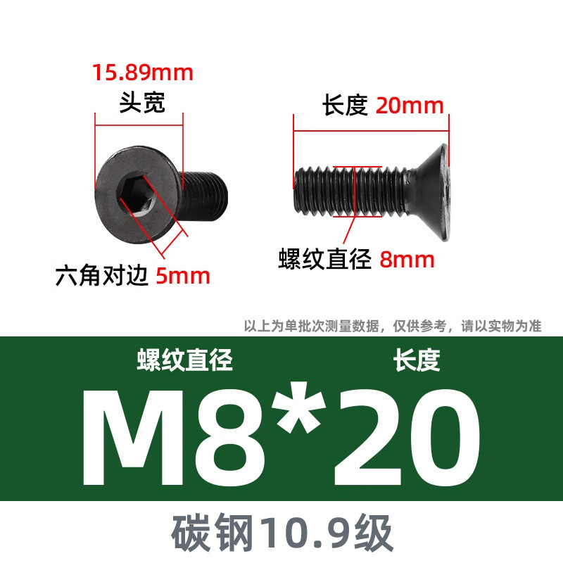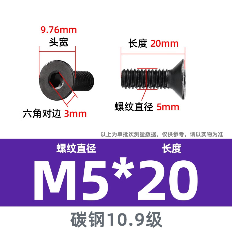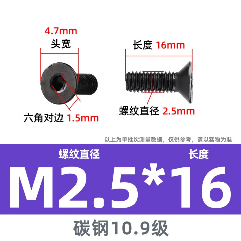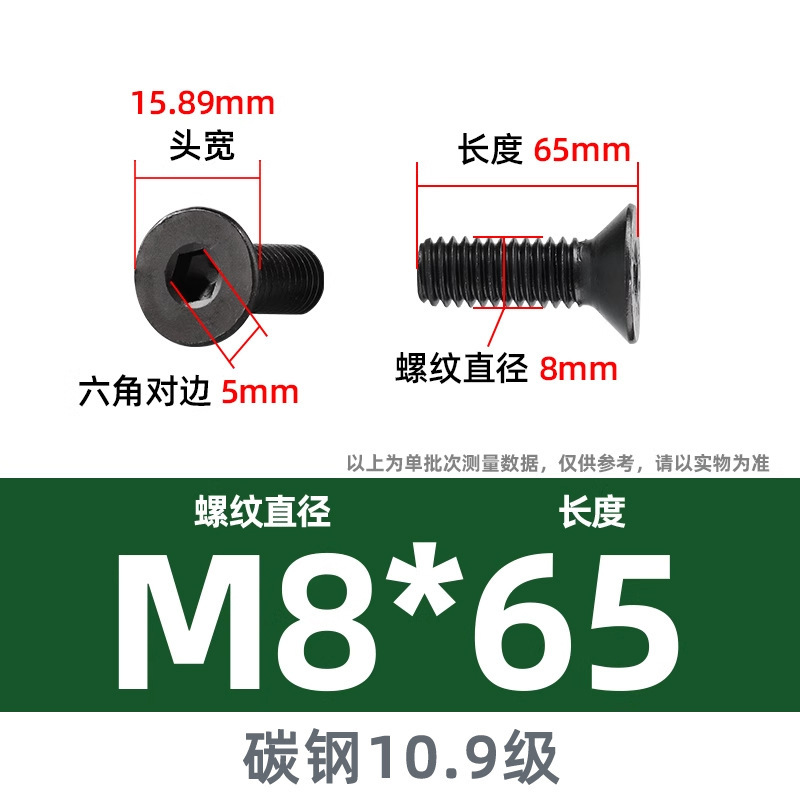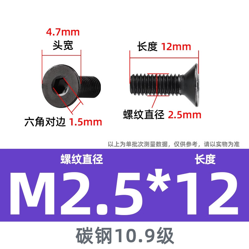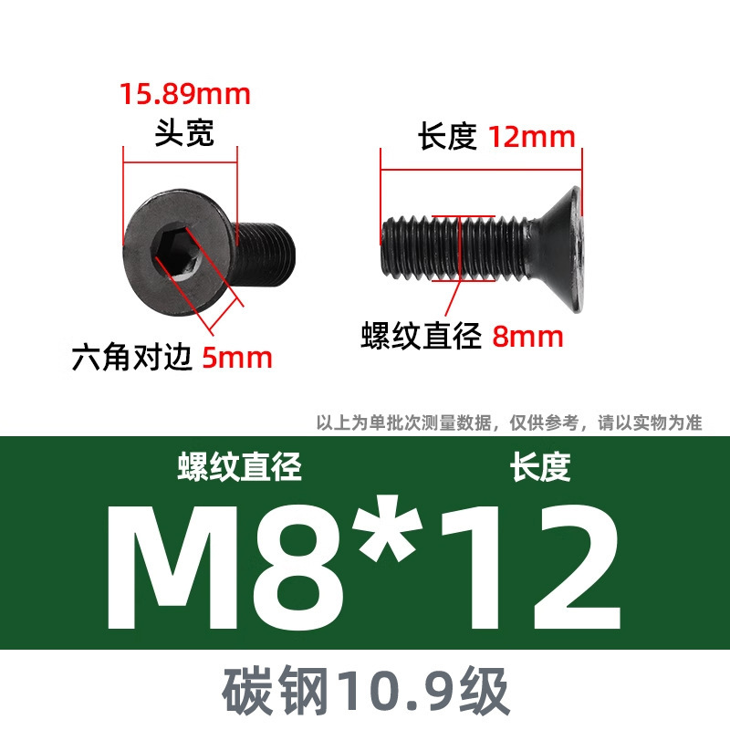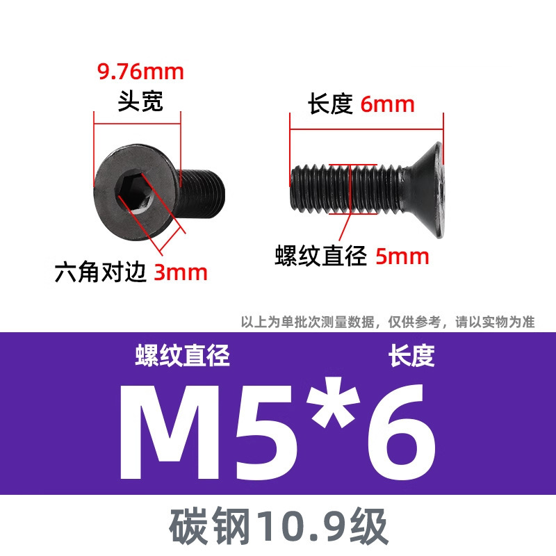 탄소 강철 10.9 등급 카운터 침몰 헤드 육각 나사 DIN7991 고강도 검은 평면 헤드 스크류 M2M3-M12