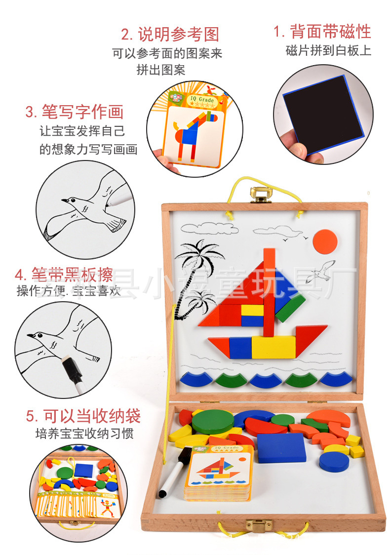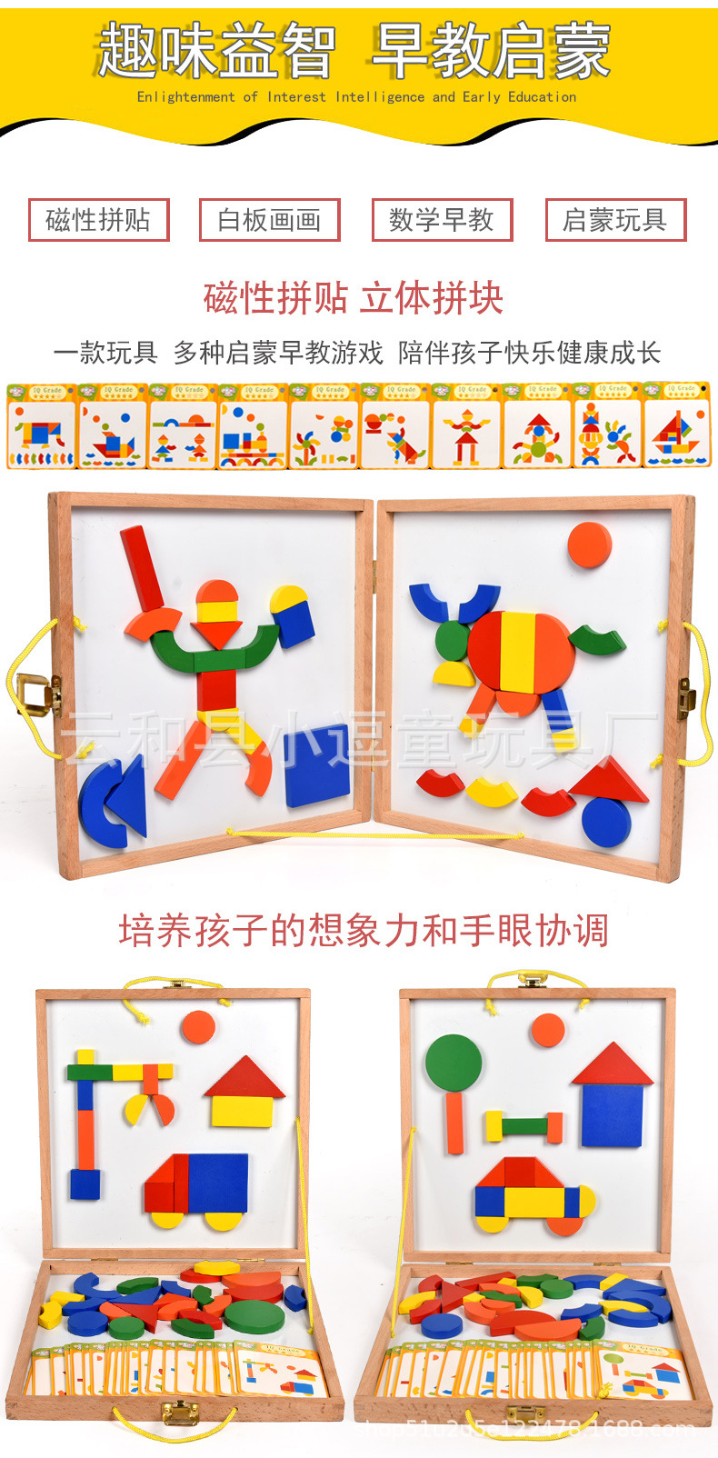 국경을 넘어 인기 있는 나무 자석 3D 입체 퍼즐 어린이 교육용 다기능 양면 그림판 손과 두뇌를 사용하는 장난감