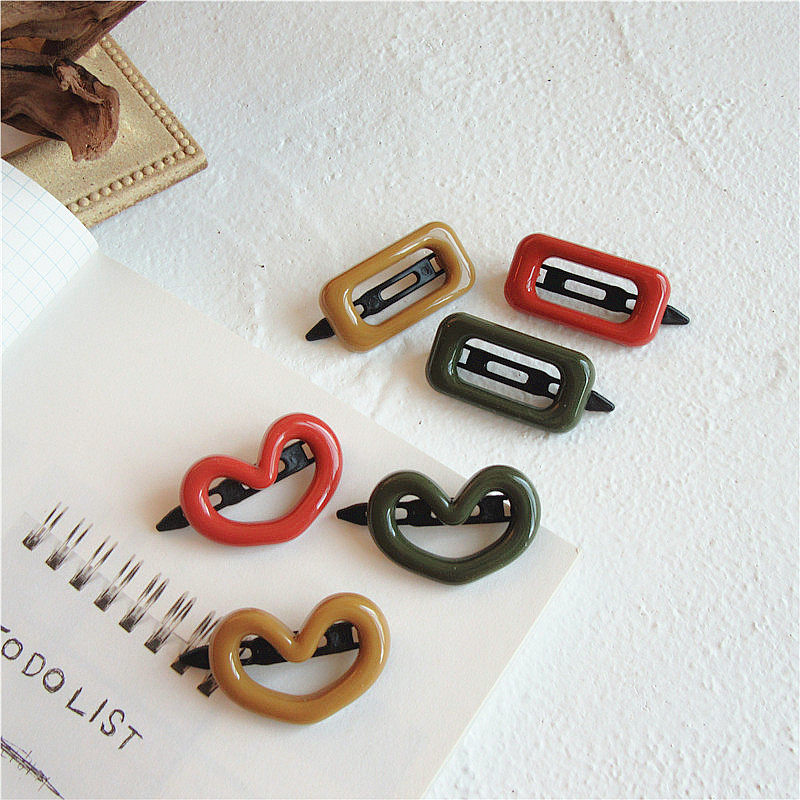 간단한 다목적 기하학적 머리핀 앞머리 클립 여자의 다채로운 수지 머리핀 사이드 클립 한국 머리 액세서리 머리 장식 도매