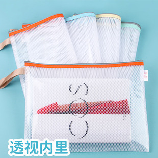 Pvc 플라스틱 지퍼 파일 가방 a4 투명 그리드 학생 종이 파일 가방 인쇄 로고 휴대용 데이터 가방스토어 가기